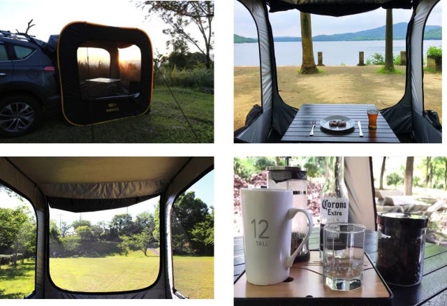 ポップアップ式のCARSULEは簡単に設営できます。慣れれば1人で5分くらいで可能です。