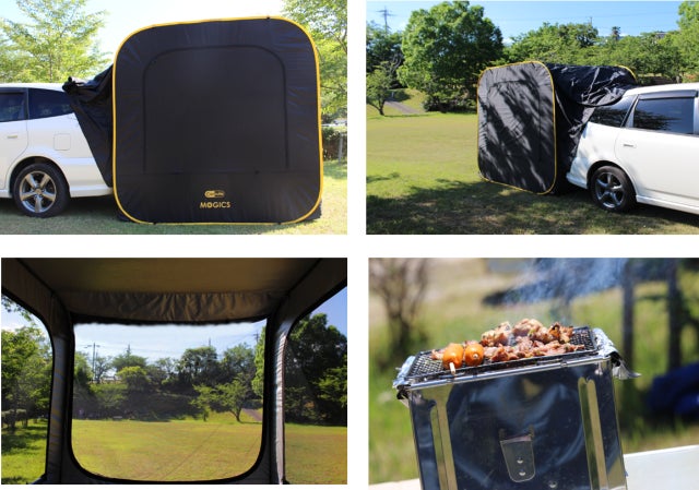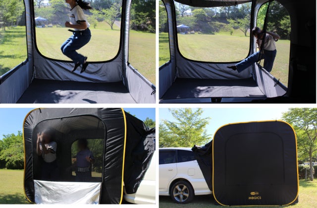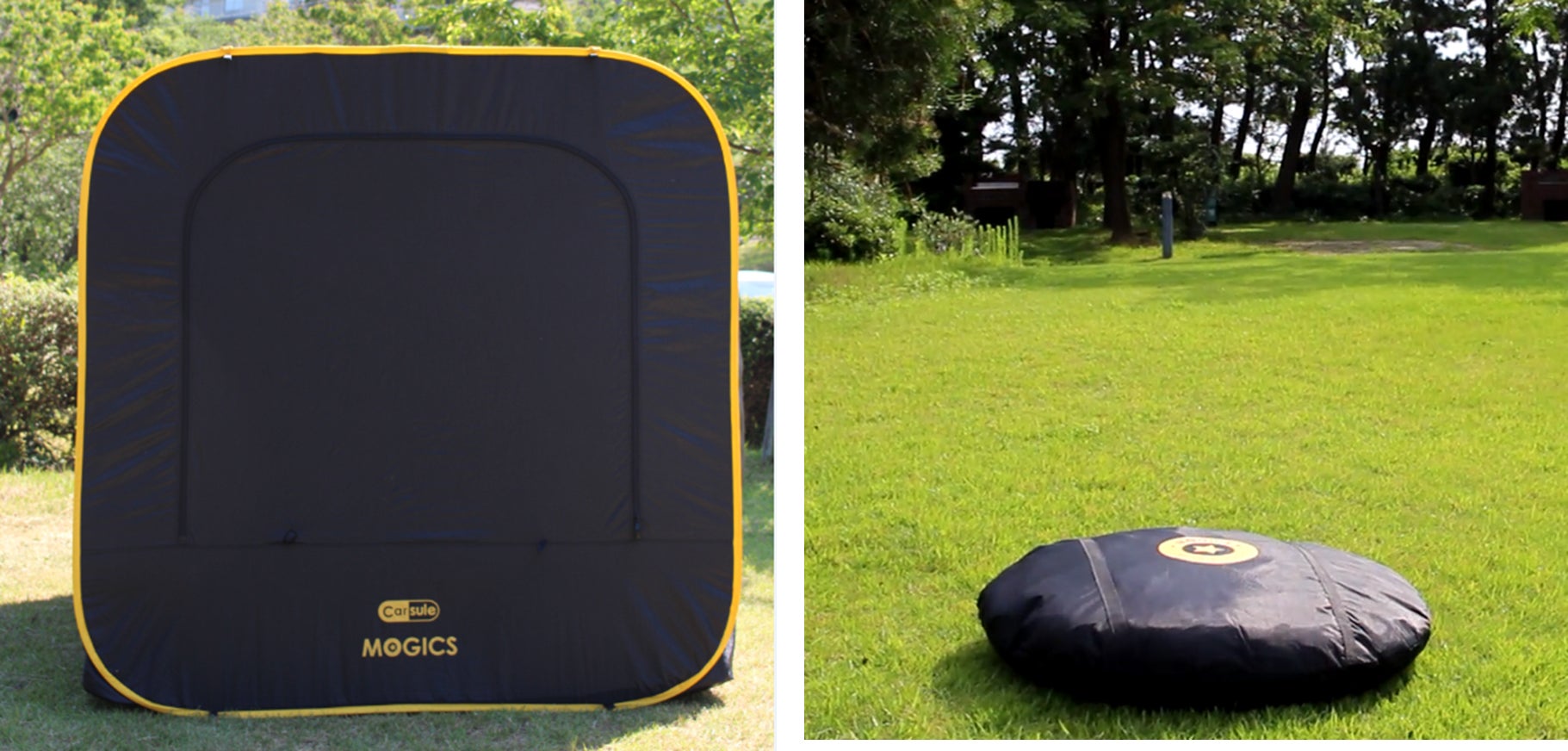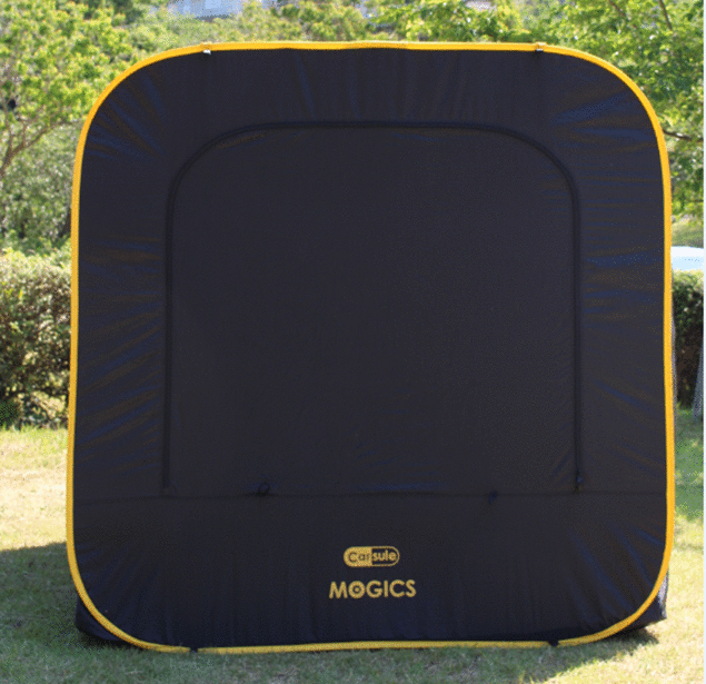 CARSULE(カースル)はMOGICS社がデザインした車に連結できる画期的なポップアップテントです。アウトドアでリビングのような快適さを実現します。キャンプやビーチ・川遊びの休憩場所、車中泊におすすめです。