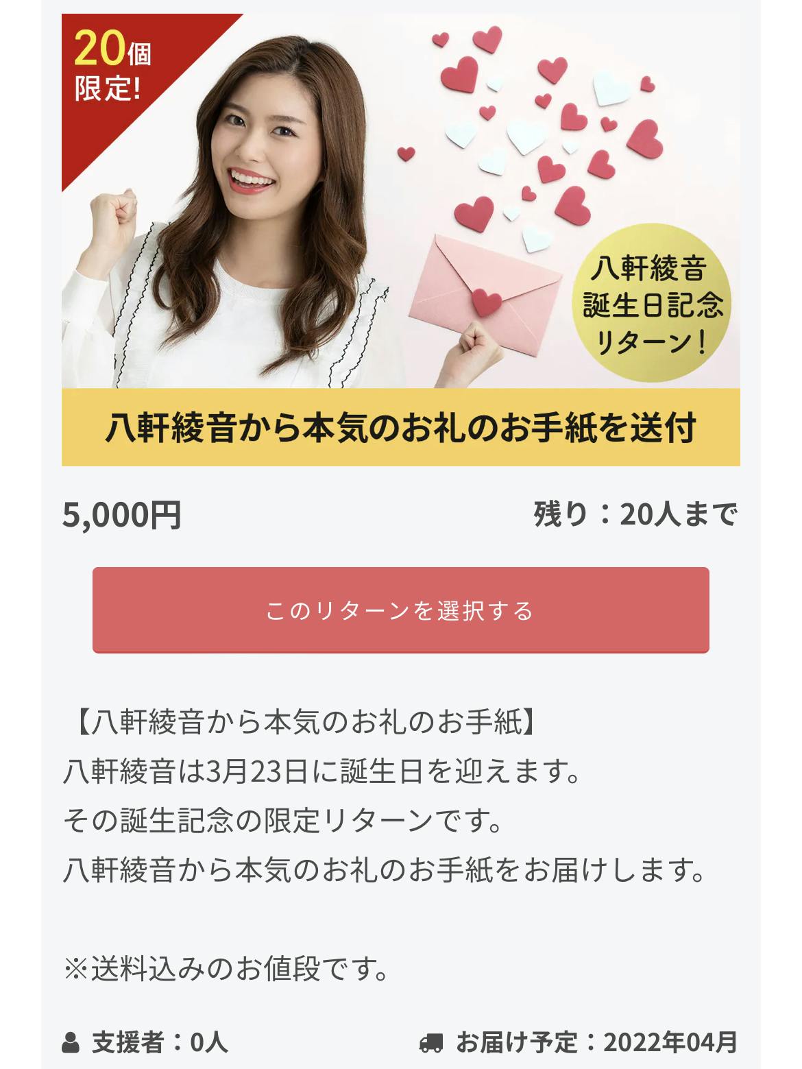 誕生日までの限定リターンを追加!!