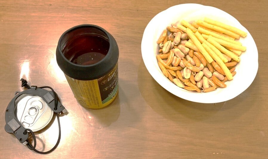 蓋がビール缶に落ちる仕様のオープナーとは違い、上から完全に取る仕様にする事で衛生面の懸念を払拭しました。