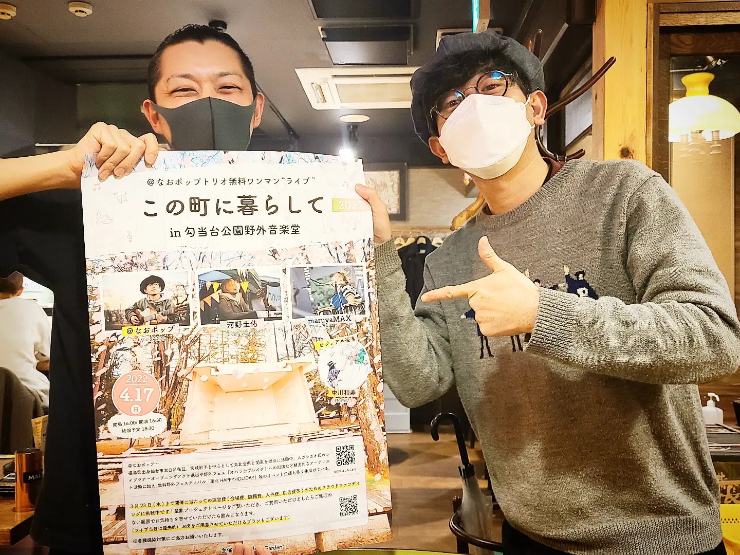あ、ポスターお渡ししつつ、仙台のミュージシャンの先輩後輩、クリエイター仲間と食事に伺ってきまして。笑