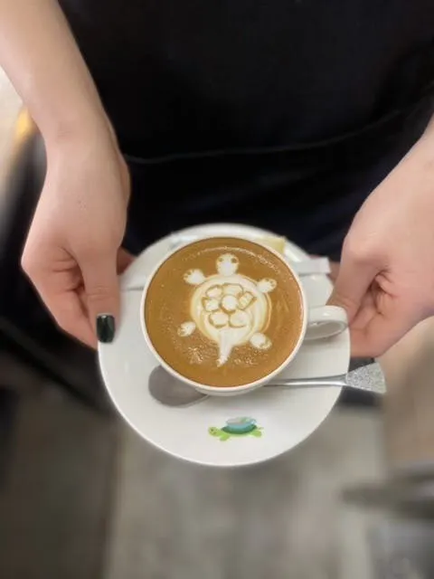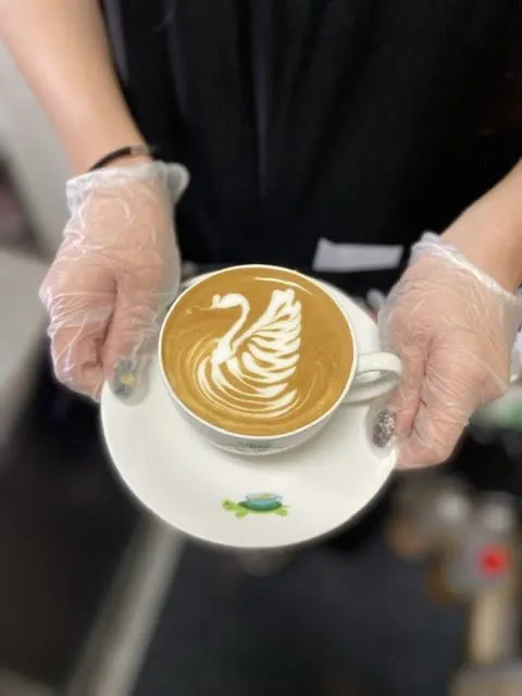 シーズニングテーブルでもこだわりのコーヒーやラテアートを提供しています。