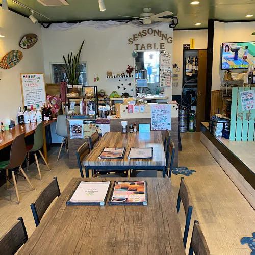 若い頃にサーフィンをやっていて、カメのことを知りました。ハワイでは海の神様として縁起がよいと崇められている存在です。シーズニングテーブルでは「お客様にゆっくり寄り添えるお店を」という思いから、そんな神様の遣いであるカメの甲羅に、コーヒーを乗せたロゴを冠しています。