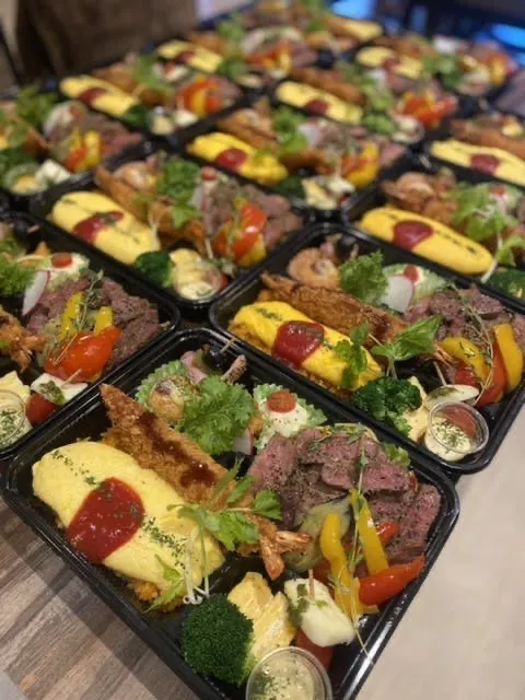 地元やお客様に愛され、売上も順調に伸ばしていた最中、コロナウイルスの影響により当店も営業自粛を余儀なくされました。コロナの状況を見ながら「今出来ること」「お客様に喜んでもらえること」を前倒しで考え、お弁当の開発やデリバリーにも市内1個から対応したりと、いろんな施策に取り組みました。今では会社とお弁当の定期契約をしたり、スタジオとロケ弁の契約をしたり、当日お電話でのご注文が売上の1/2を占めています。