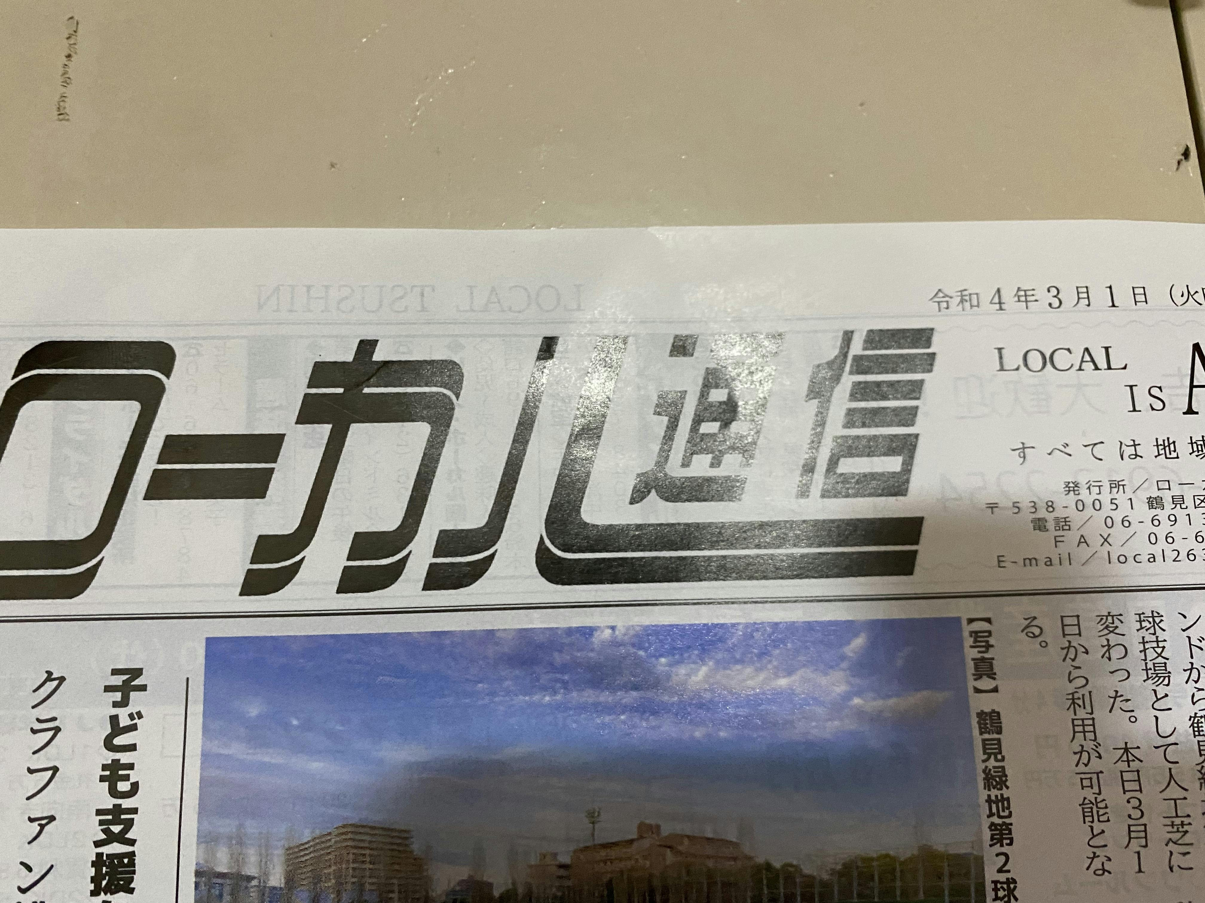 3/1、大阪市鶴見区で発行されてる新聞に掲載されました♫