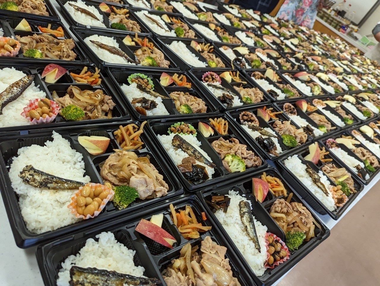 100食予定で作ってたのですが、予想よりたくさん出来たので115食分食べてもらう事が出来ました♬