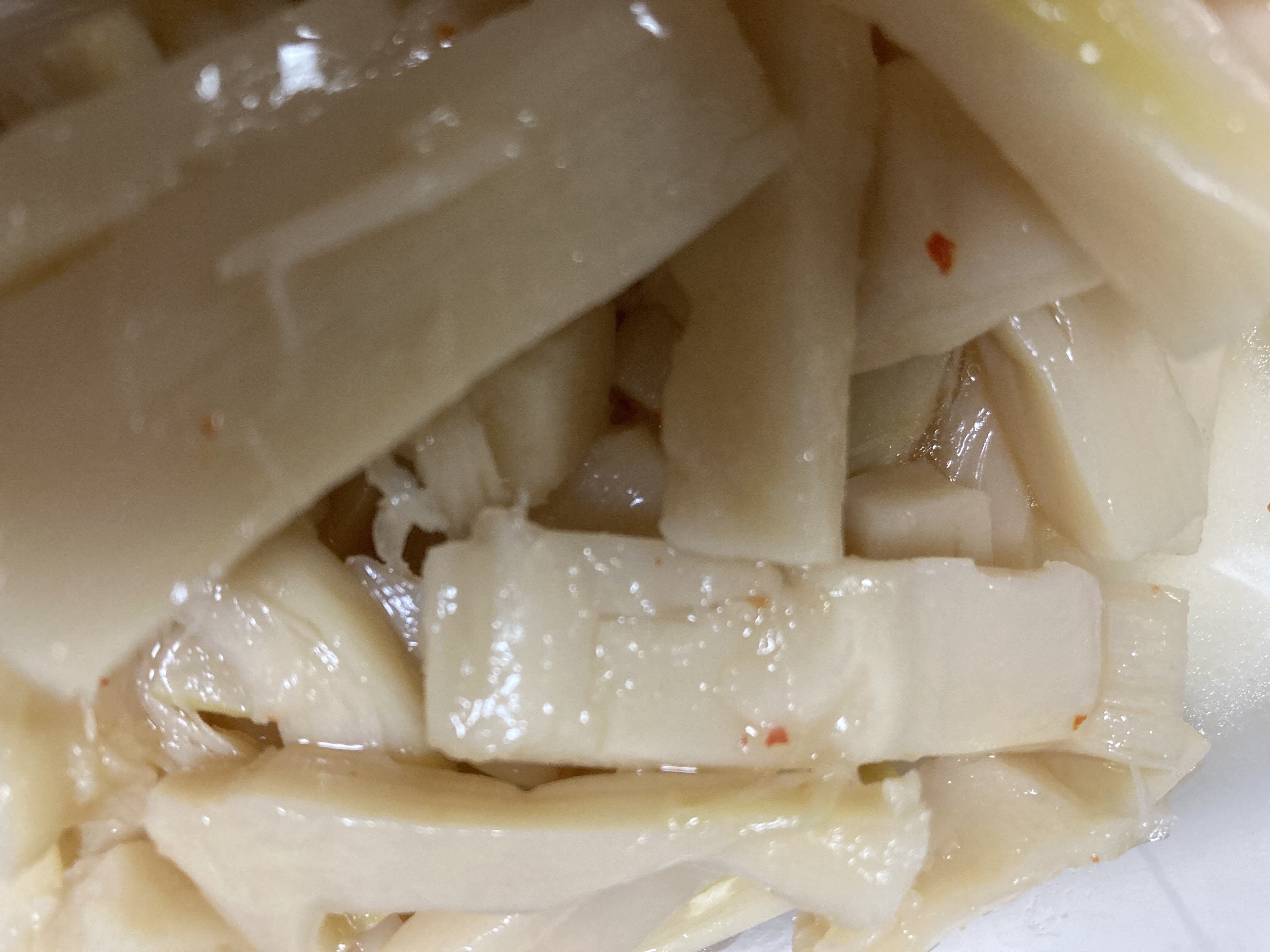 定期開催されている放置竹林を活用したイベントこれは竹が増え過ぎて竹害を起こさないようにするために必要な作業なのですが、この際に採取した幼竹(伸び過ぎたタケノコ)は売り物にはならないので、現状ではほとんどが廃棄されています。フードロスの観点からもこの幼竹を有効に使うことは大変意義があることですが、初めにお話をいただいた時は「放置竹林の管理に京漬物屋がお手伝いできることはないのでは?」と思いました。たしかに、廃棄される幼竹を有効利用した食品を作り、販売できれば、ビジネスとして成り立つ可能性はありますが、タケノコを使用した伝統的な京漬物はなかったからです。しかし、打ち合わせを重ねていくうちに、弊社でお手伝いできることが見つかりました。それは「廃棄される幼竹(伸び過ぎたタケノコ)を使ったメンマの開発」です。