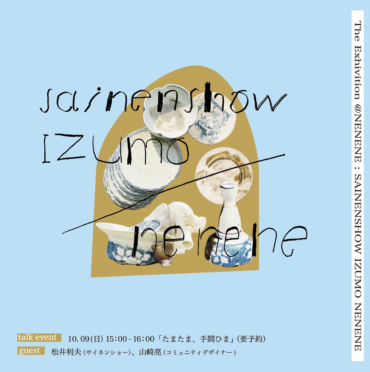 2022/09/19 19:43こんにちは、ねねねです◎展覧会会期の変更と、詳細が決まりましたので改めて告知させていただきます。Instagramの方でもまた投稿させていただきますので、そちらもチェックしてみてくださいね。ーーーーーーーーーーーーーーーーーーーーーーーーーーーーーーーーーーーーーーーーーーsainenshow Izumo / nenene展会 期|2022年10月9日(日)〜10月23日(日)営業日|土曜〜火曜時 間|11:00〜19:00※水〜金曜日:定休。臨時休業については、Instagramにてお知らせします場 所|ねねね(島根県出雲市大社町菱根1027)駐車場|公共駐車場「みせん広場」をご利用ください。スペースまでは、徒歩5分ほどです。【event】TALK EVENT 「たまたま、手間ひま」サイネンショー主催の松井利夫さん、コミュニティデザイナーであり株式会社studio-Lを運営される山崎亮さんを出雲にお招きして、お二方の活動に関するお話をしていただきます。日 時|10月9日(木)15:00〜16:30場 所|ねねね(島根県出雲市大社町菱根1027)参加費|①書籍「ザ・サイネンショー」付きチケット5200円(税込)※トークゲストサイン入り書籍+ドリンク+Abakeお菓子付き②通常チケット 1200円(税込)※ドリンク+Abakeのお菓子付き③学生チケット 800円(税込)※ドリンク+Abakeのお菓子付き定 員|15名程度(先着順/マスクのご着用をお願いします)出 演|松井利夫(サイネンショー)、山崎亮(株式会社studio-L) 予約・問合せ|Googleformよりご記入ください▶︎https://docs.google.com/forms/d/e/1FAIpQLSeuda04L7RWFV7oeP5QqvBj4lnwgm_cqLCmWMERNTMyfCzxGg/viewform ※写真のQRコードからもアクセスいただけます【book information】※会期中、ねねねで販売もしております(少数限定)書籍「ザ・サイネンショー」概要発行:一般社団法人きりぶえ編集 : サイネンショー印刷・製本:修美社デザイン:三宅航太郎(MAA)写真:うかぶ LLC、表恒匡、日下部 一司、小山真有、服部滋樹、 松井利夫、三宅航太郎判型:B5 版頁数:100 P価格:3,520 円(税込)発刊:2022 年 9 月【artist】サイネンショー2012年に始まった陶芸家 松井利夫の呼びかけによるプロジェクト兼チーム。各地で集められた不要陶器を1350℃の登窯の中で再燃焼することで、既製品に偶然のエフェクトが付与され新しい表情が生まれる。#松井利夫#山崎亮#nenene_pj#ねねねプロジェクト#島根#出雲 もっと見る8月にお届け予定のリターンを購入してくださった皆様へ お詫びのお知らせ