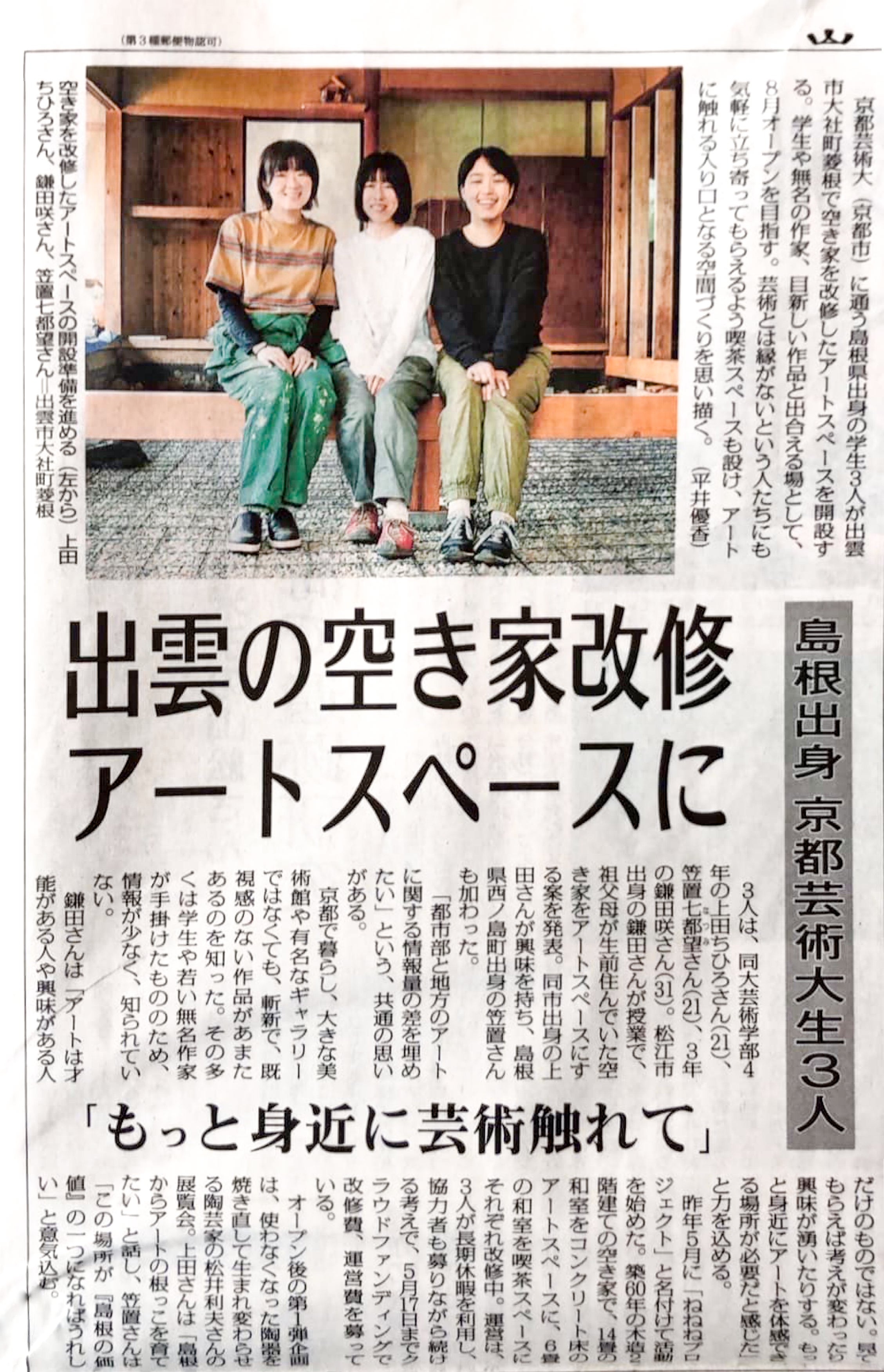 2022/04/16の山陰中央新報にて、私たちの活動を掲載いただきました!