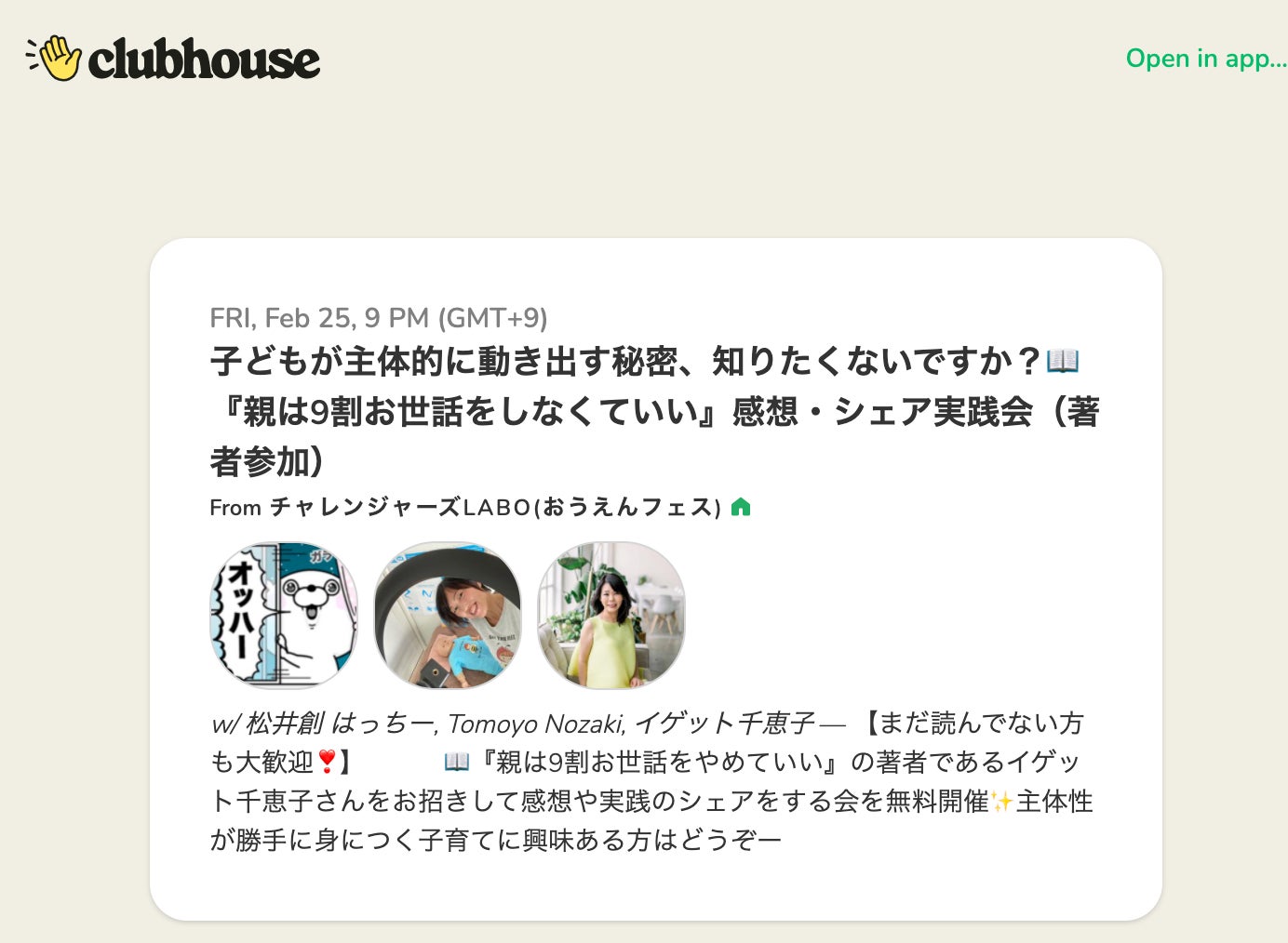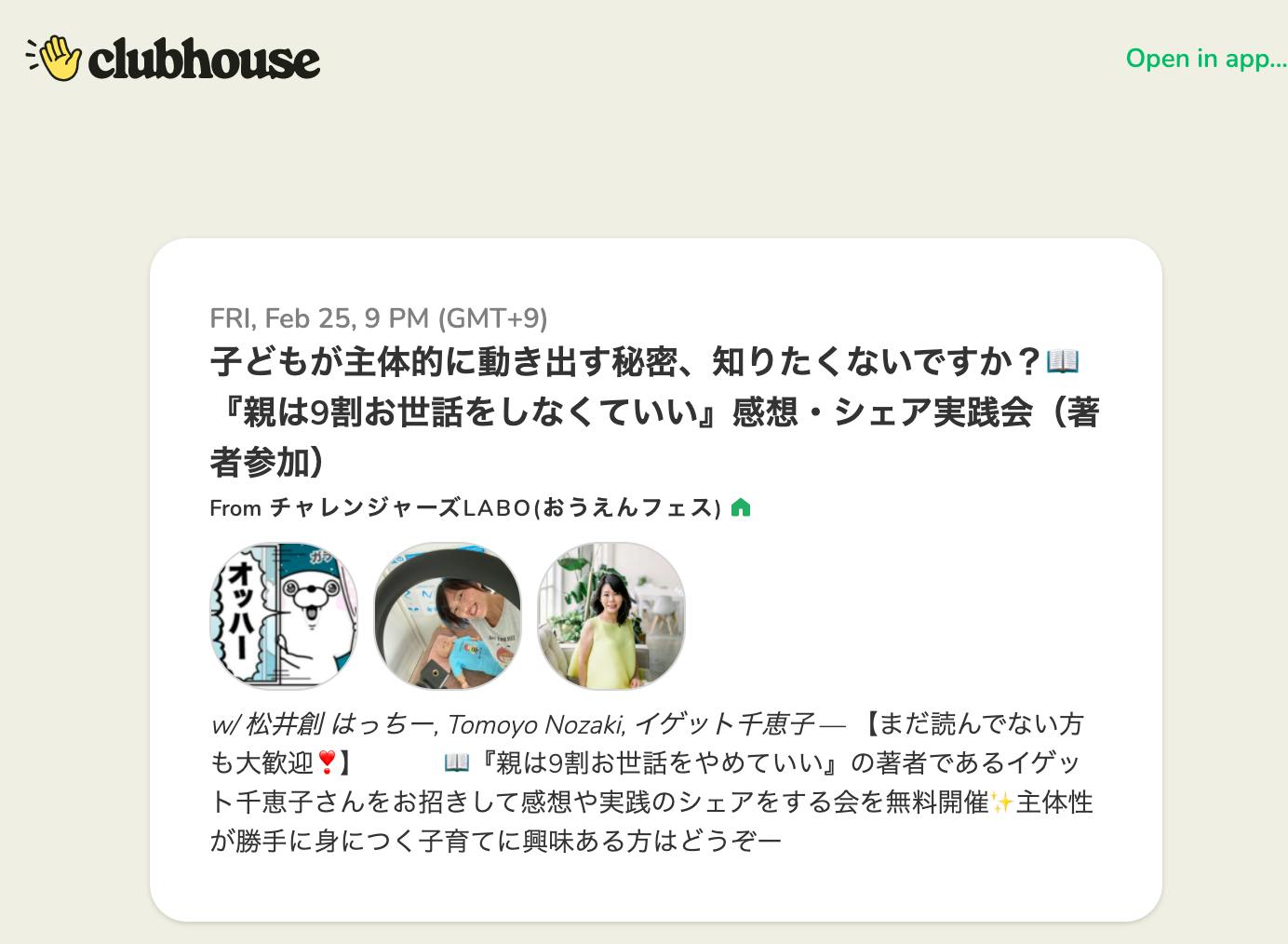 clubhouse なので、耳だけ参加でもよし!