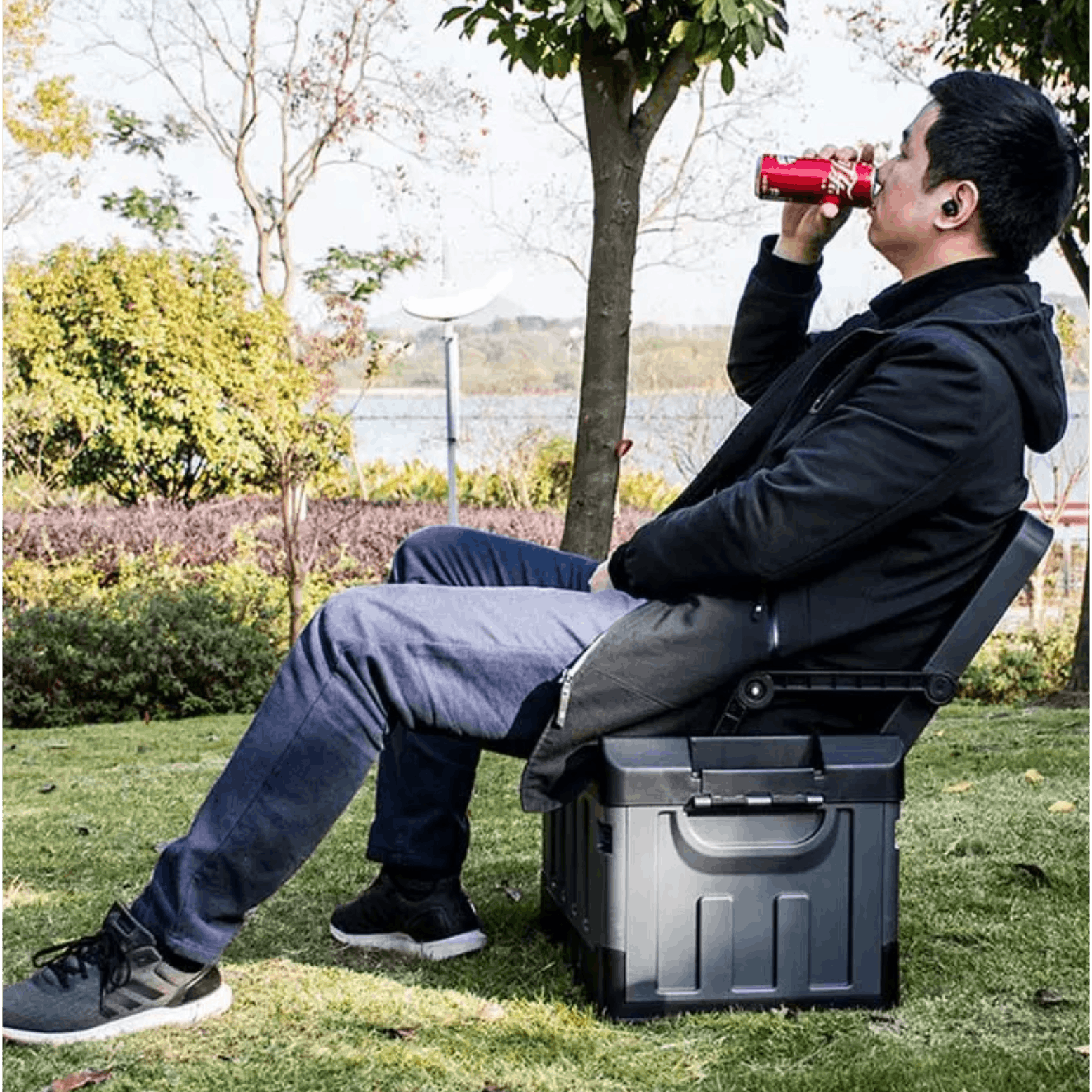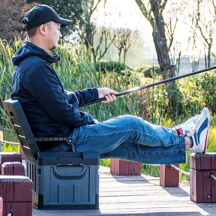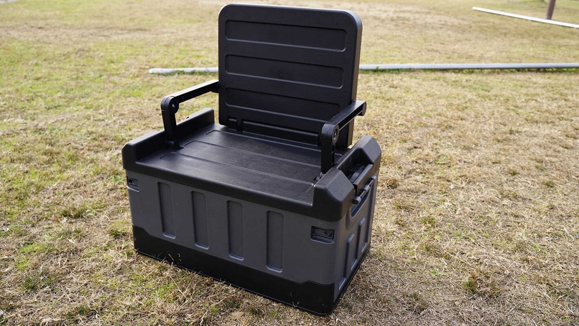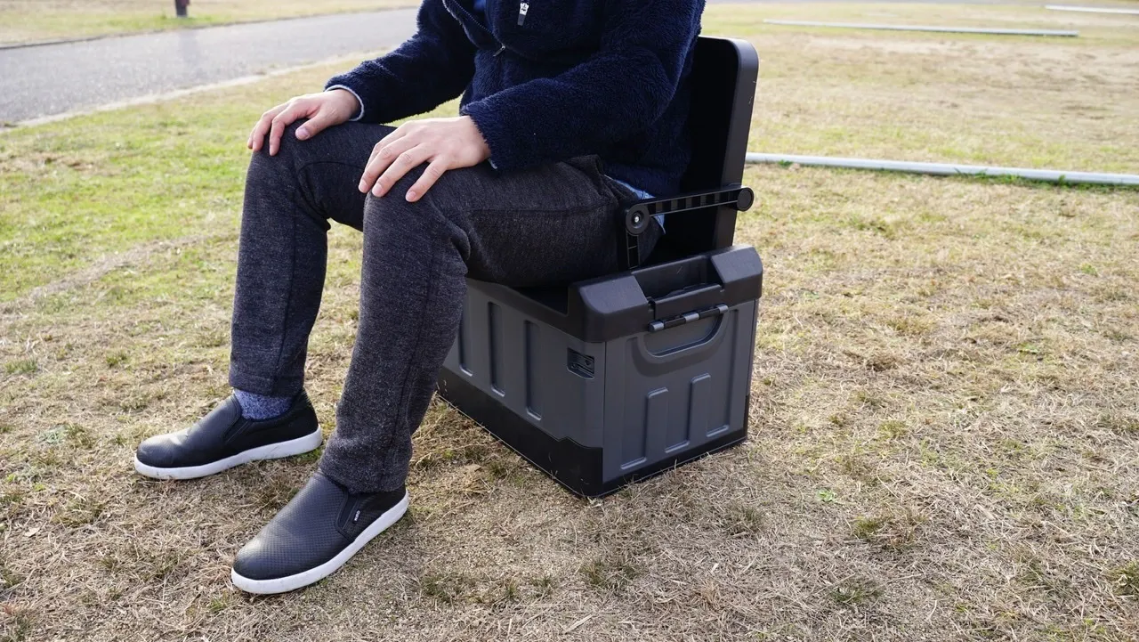 そんな時、ツールボックスのフタ部分を起こすだけ。背もたれと、ひじ掛けが出てきて、ちょっと一服。