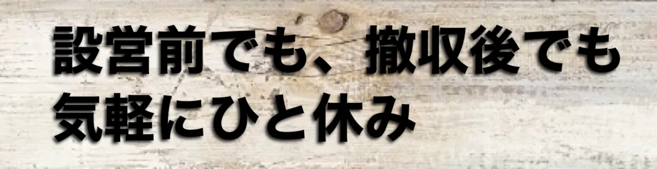 折り畳みチェアなど、道具を広げることなく腰掛けられます。