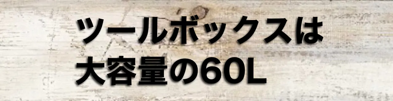 もちろん、ツールボックスは60Lと大容量。収納部の耐荷重も15kgとキャンプ道具入れとしても大活躍。