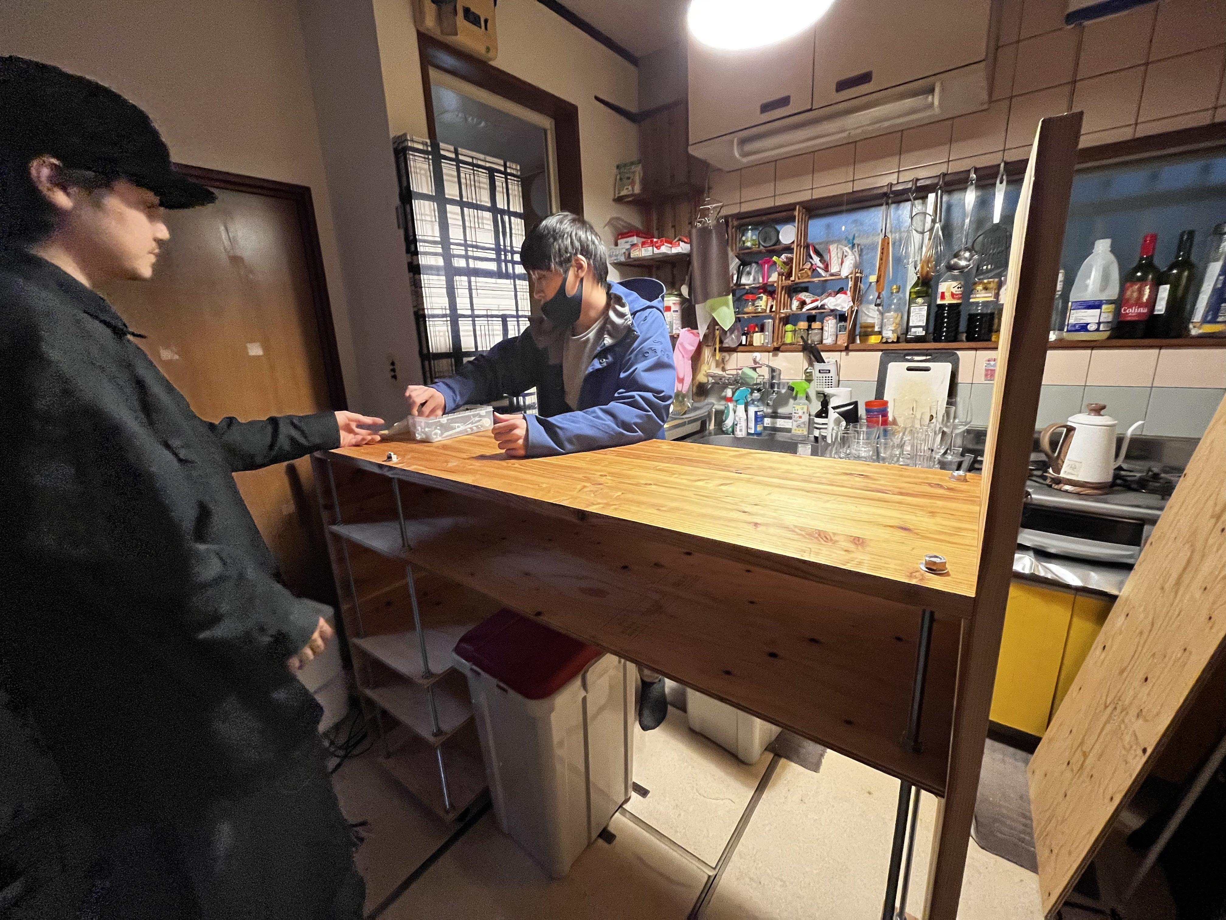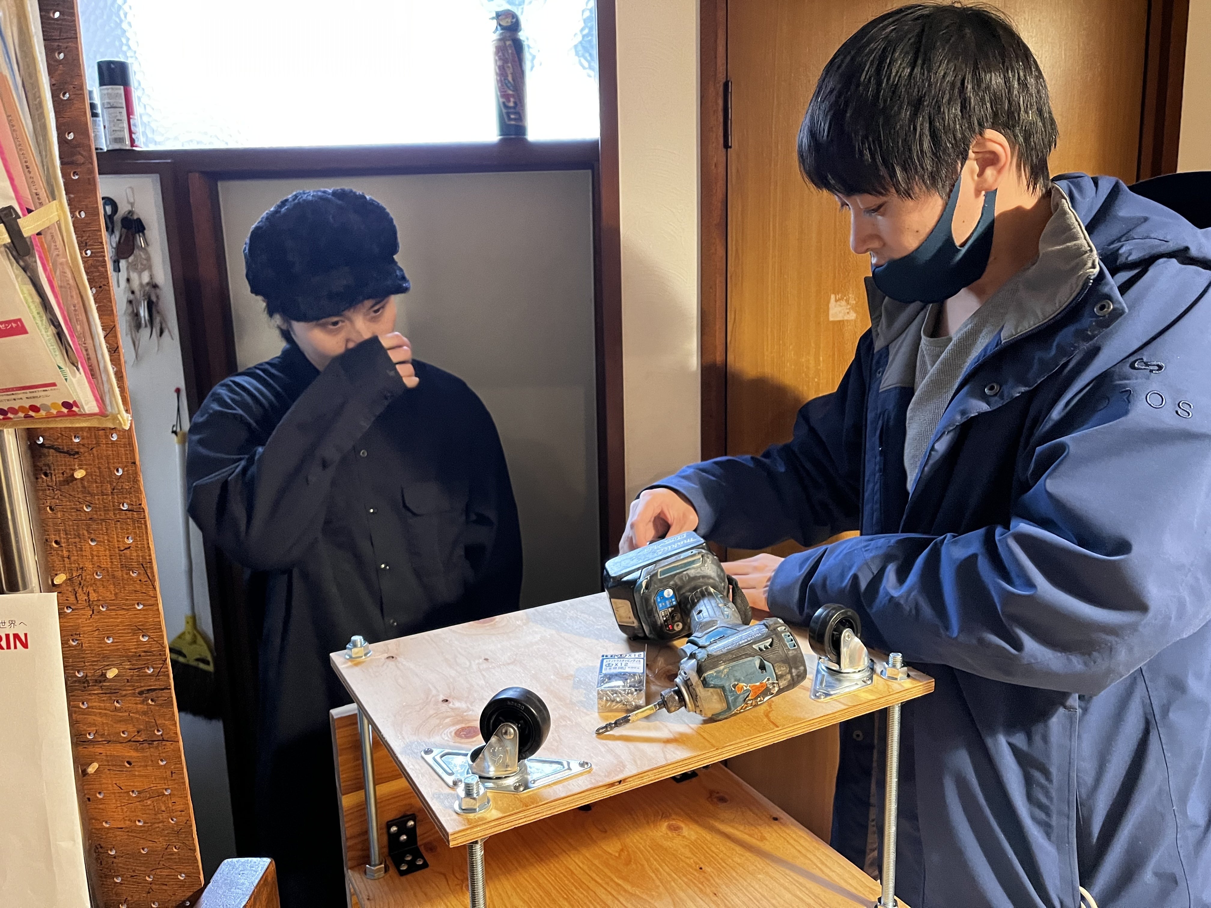 雨の中、中野くん(と、お手伝いしてくれたおモテアマスの住人さん。)が搬入と設置をしてくれました。