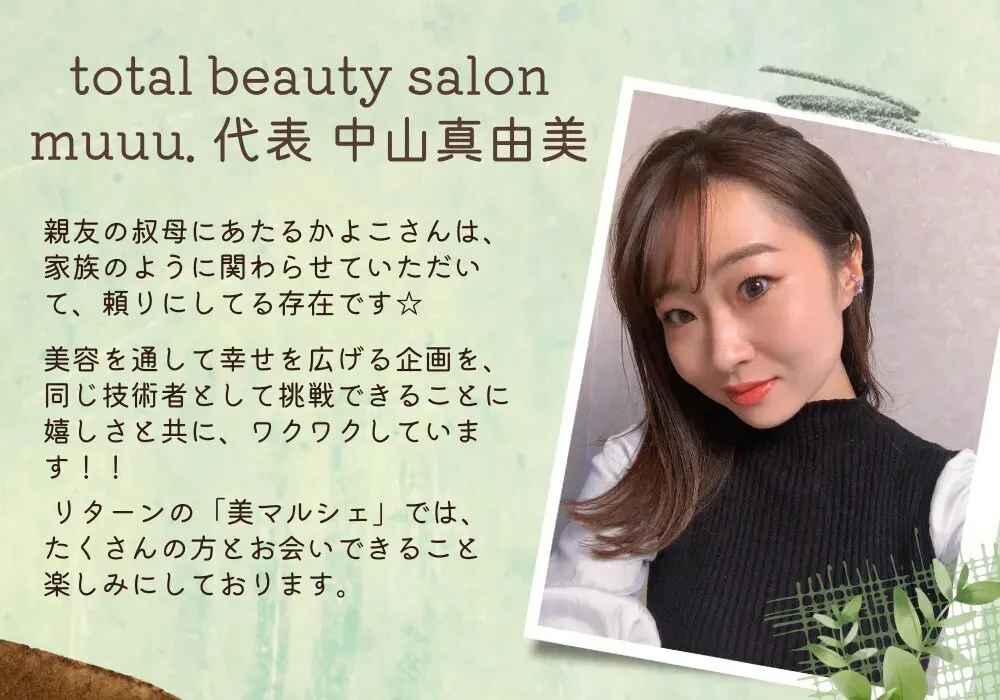 今回、美マルシェを一緒にしてくれる中山真由美さん(まゆ)は ほんとにセンス抜群!安心してお任せください!
