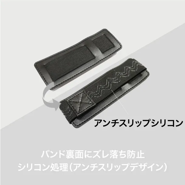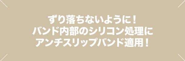 バンド裏面がシリコン処理されていて、上下に振ってもズレ落ちにくい。