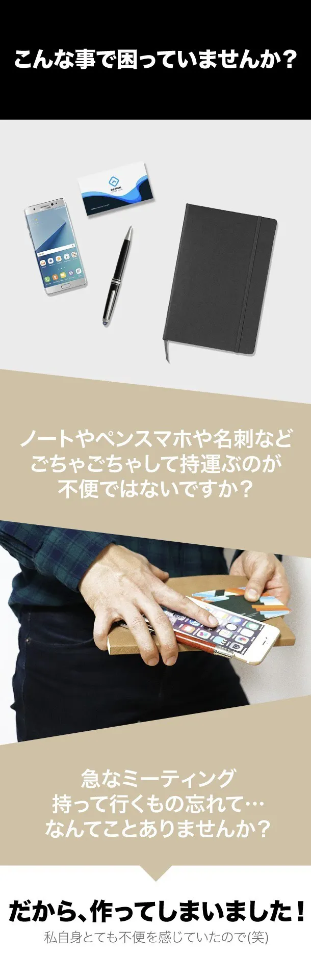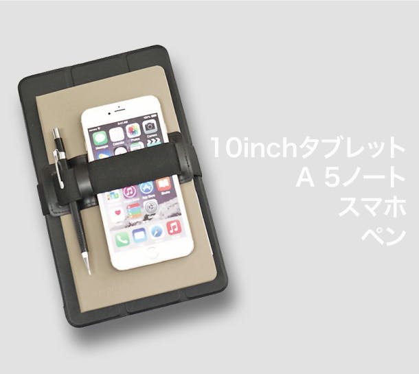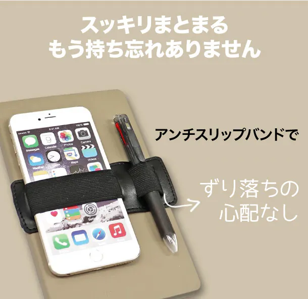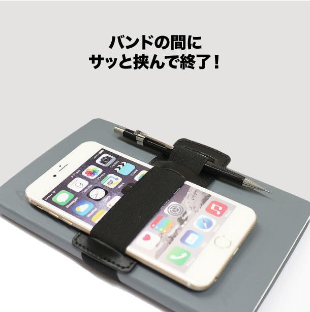 A:従来はペンしか入らないことが多く、スマホや充電器、名刺入れなども一緒にスタイリッシュに固定出来ることが特徴です。