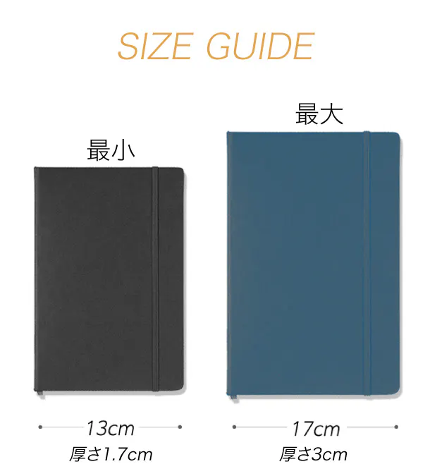 ※但しノートなどの挟む材質によって異なる場合があります。