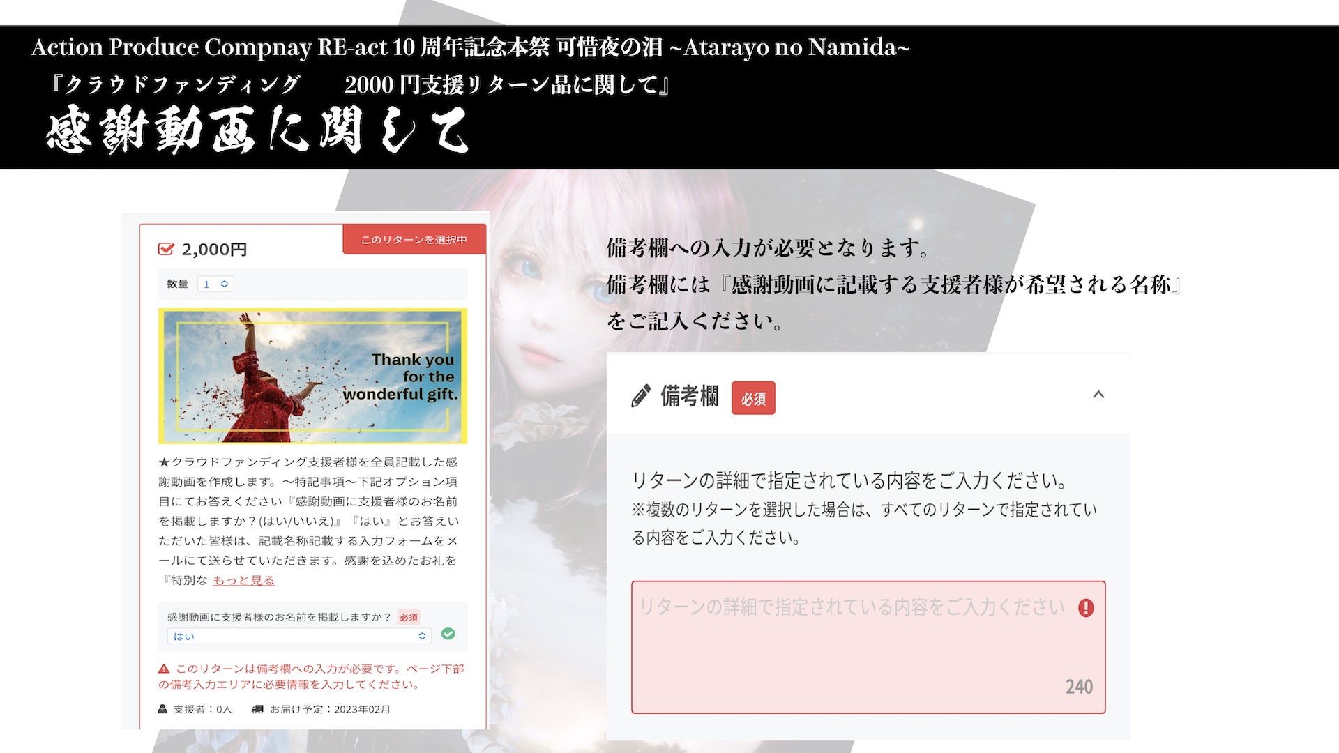 ★クラウドファンディング支援者様を全員記載した感謝動画を作成します
