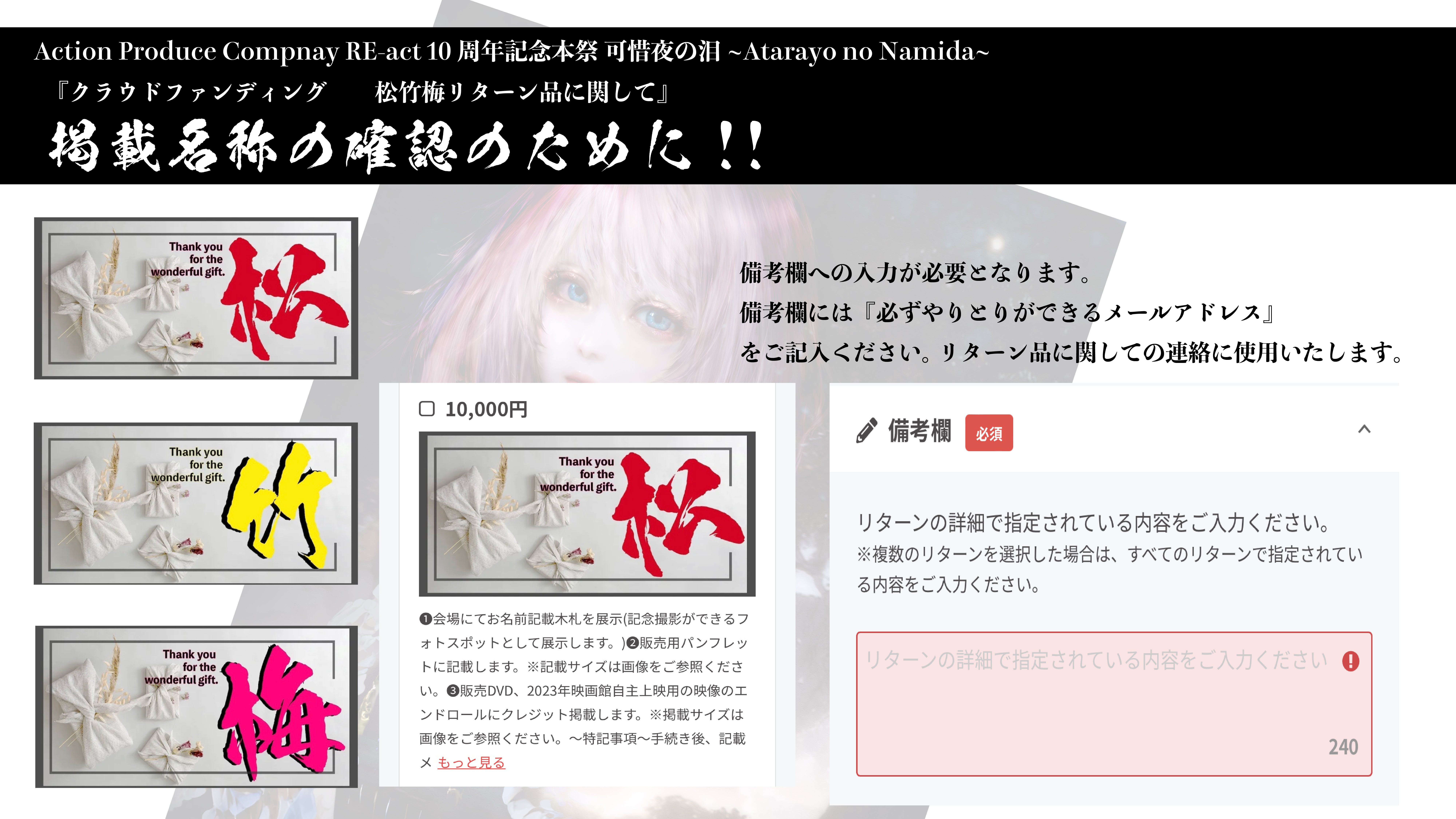 劇場での販売も行いますが、クラウドファンディングでは先行価格としてリターンに設定させていただきます。