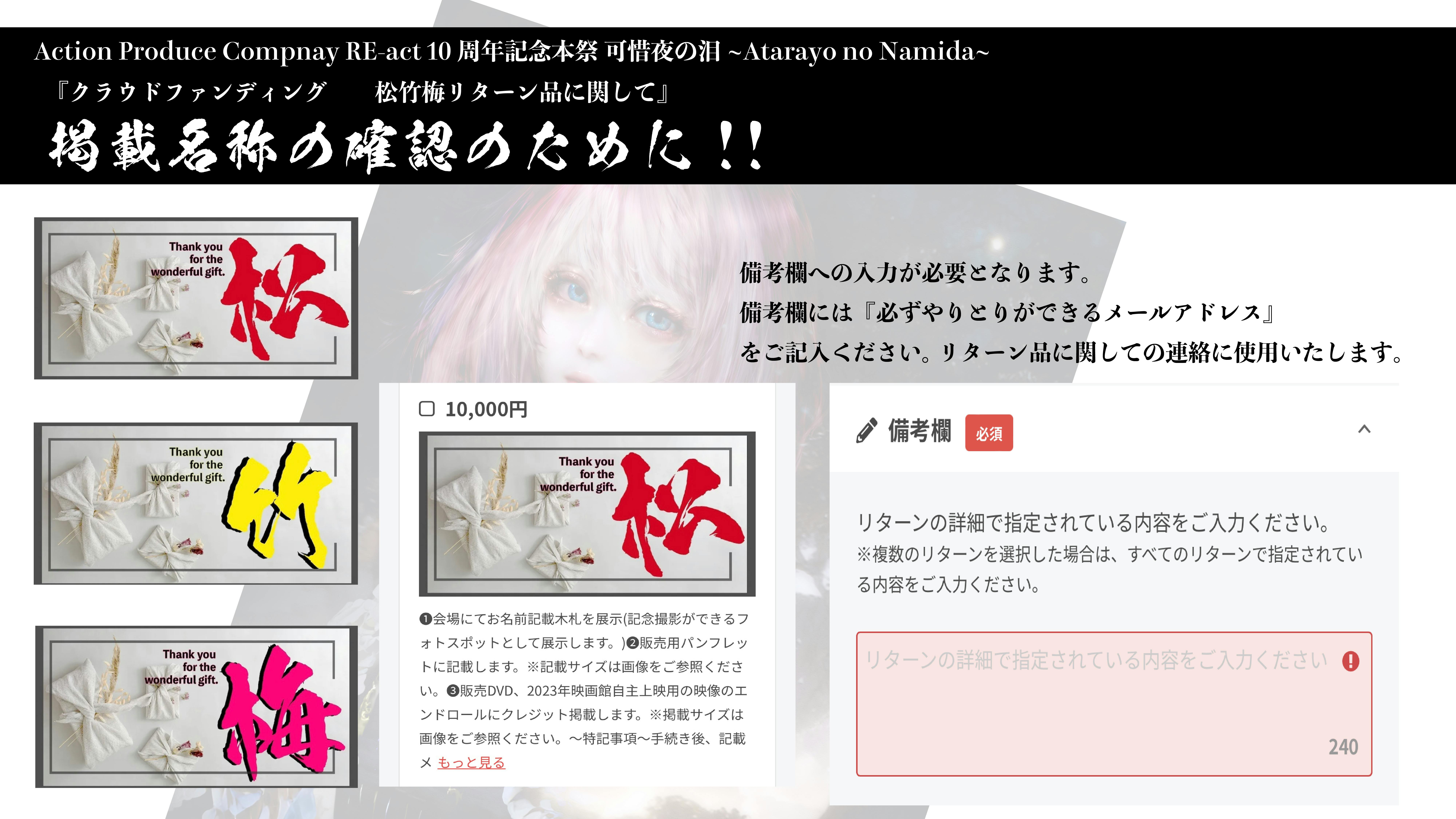 ■RE-act10周年記念本祭『可惜夜の泪~Atarayo no Namida』