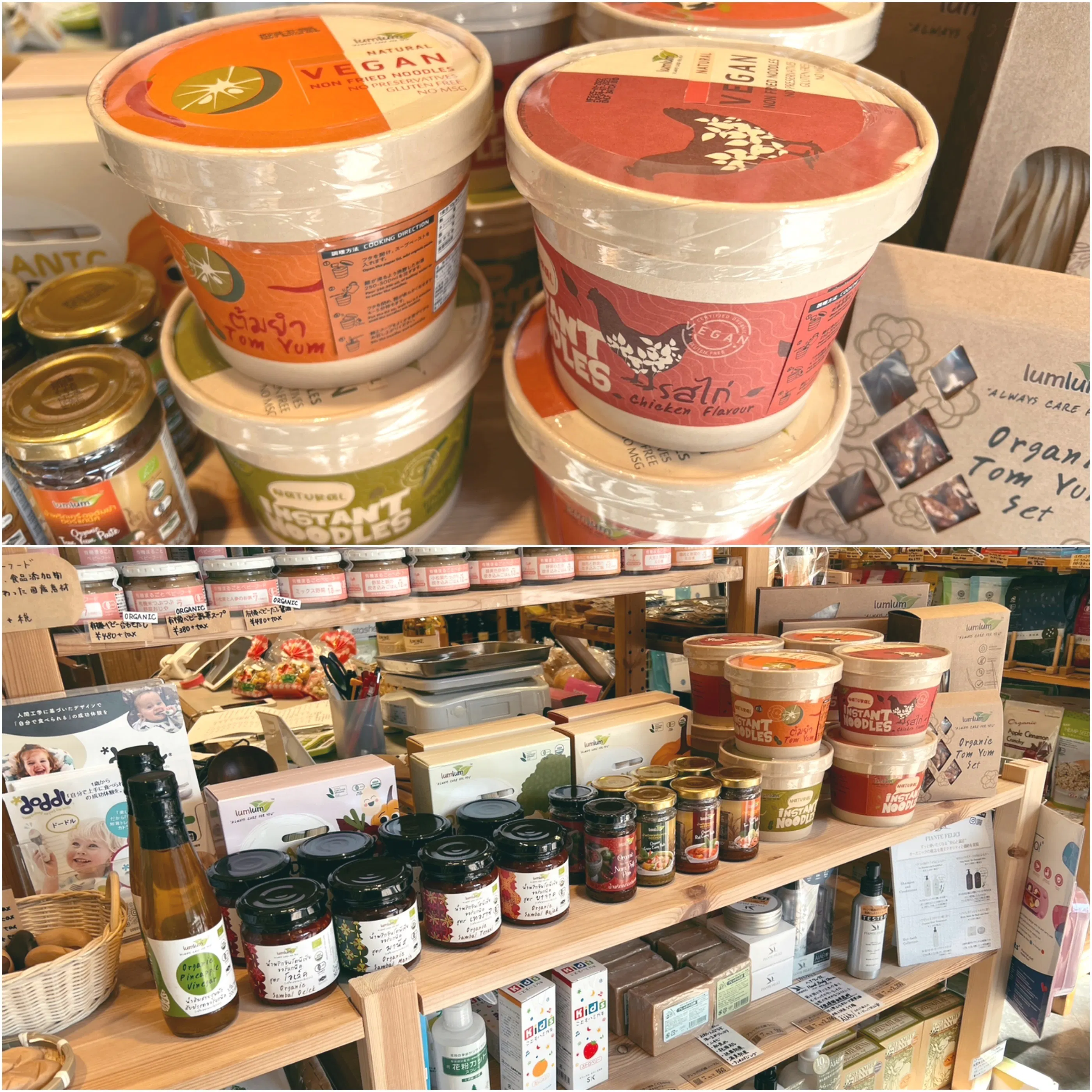 他にも一緒に届いたラムラムのオーガニック・カレーペーストやベビー向け麺類なども参考展示しております。
