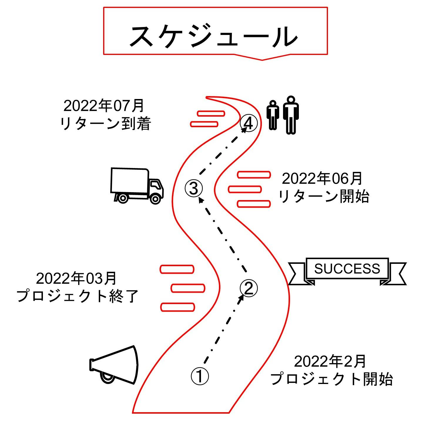 ※本文中に記載させていただいたスケジュールは、あくまでプロジェクト公開時点の予定です。支援購入の性質上、配送遅延のおそれがございます。