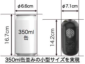350mL缶並みのサイズながらも、本体内にホースや各種アタッチメントを格納できるため、これだけあればいつでもどこでも空気入れ可能!