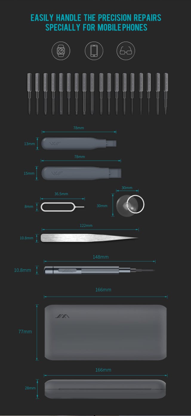 コンパクトなケースの中には、DIYや精密機器の修理で活躍する全26種のツールが揃っており、追加で工具を購入する必要はありません。