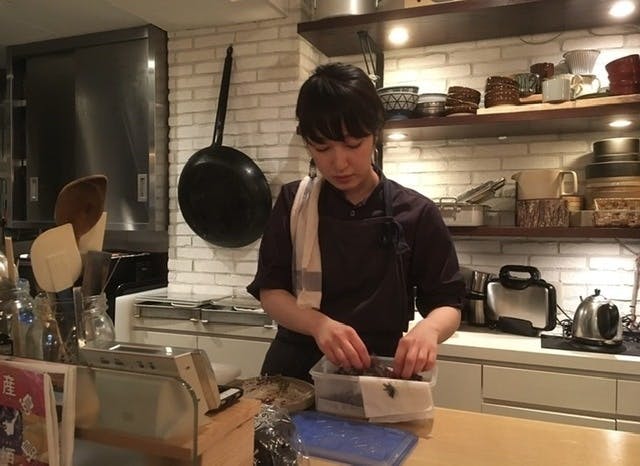 専門学校卒業後、銀座の料亭で4年間修行。その後ケータリングや作り置き業も経験する。