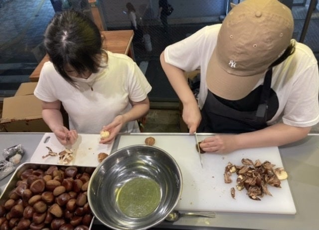 (秋は栗の炊き込みご飯。夜遅くまで仕込み)