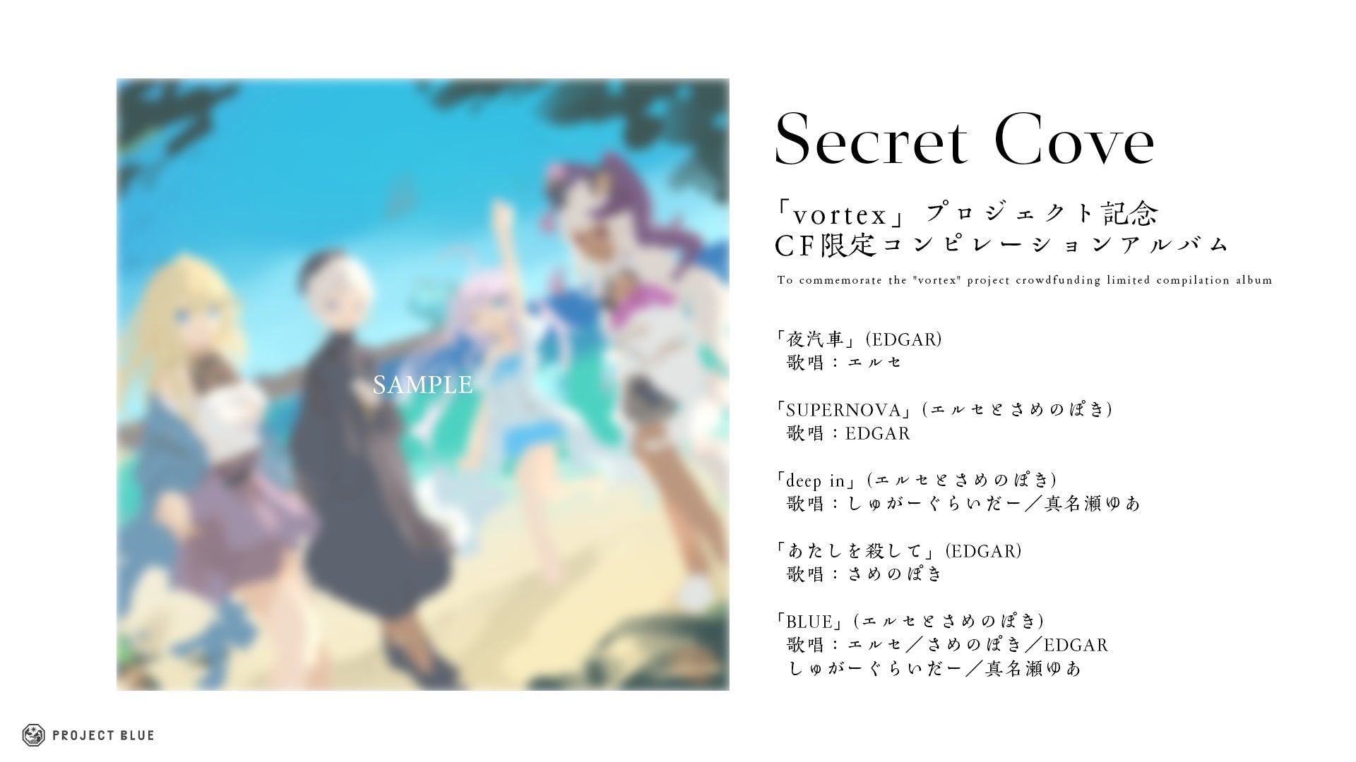 ProjectBLUE所属タレント全員が参加する、CF限定のコンピレーションアルバム「Secret Cove」をデジタルリリースします。