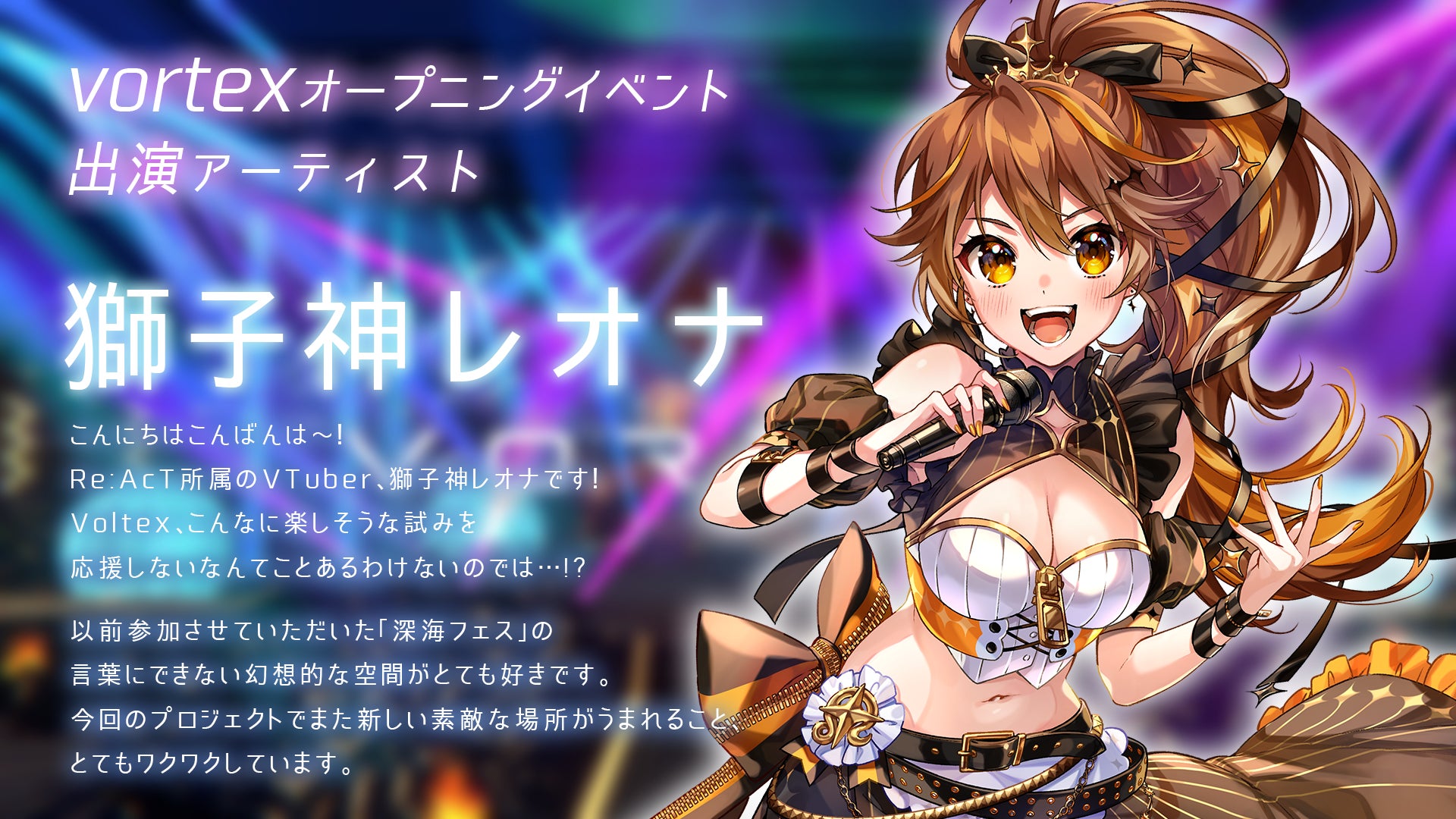 vortexのオープニングイベントに「獅子神レオナ」様の出演が決定しました!YouTube Twitter