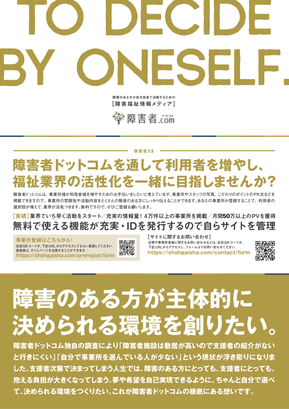 そして、2016年からは、全て障害当事者で記事作成・運営するWebメディア障害者ドットコムをリリースして、必要な情報を届けています。