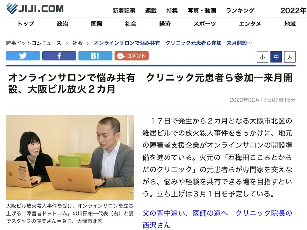 時事ドットコムにオンラインサロン開設の記事を掲載していただきました。