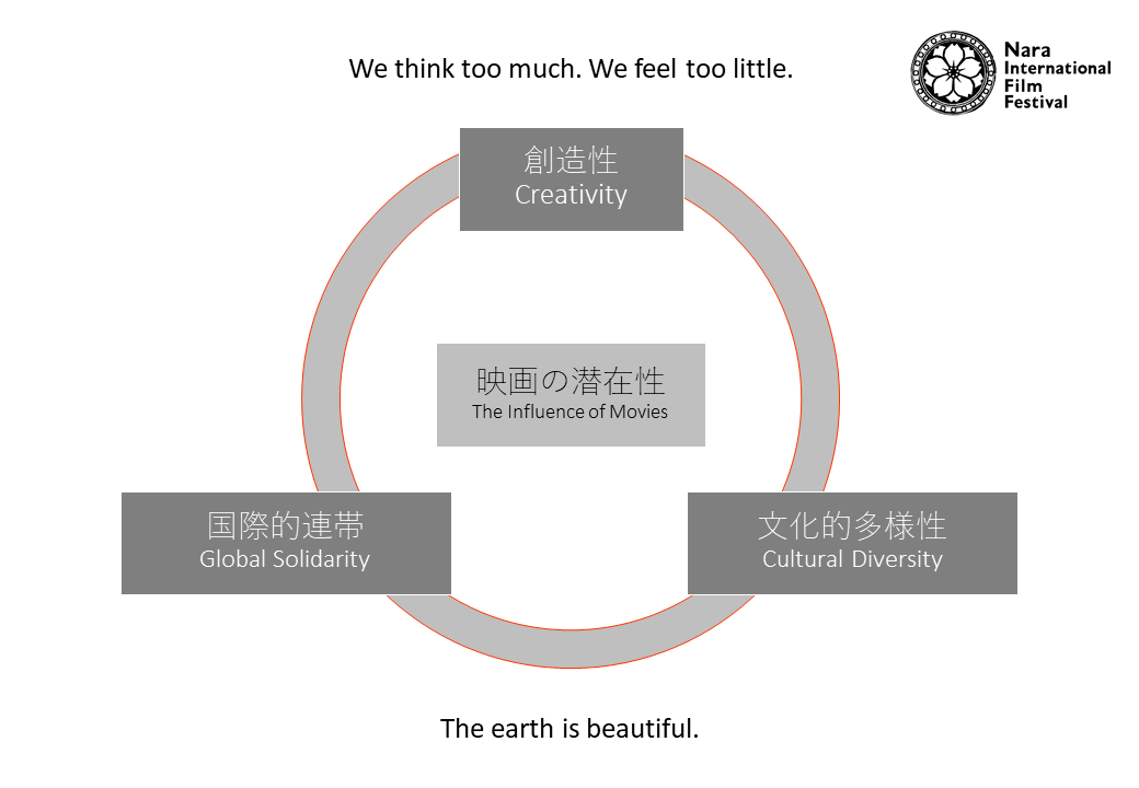 私たちは、なら国際映画祭を通じて映画に潜在する力を最大限に引き出し、今の社会に必要とされている力を育むためのスペースとして広めていきたいと考えています。