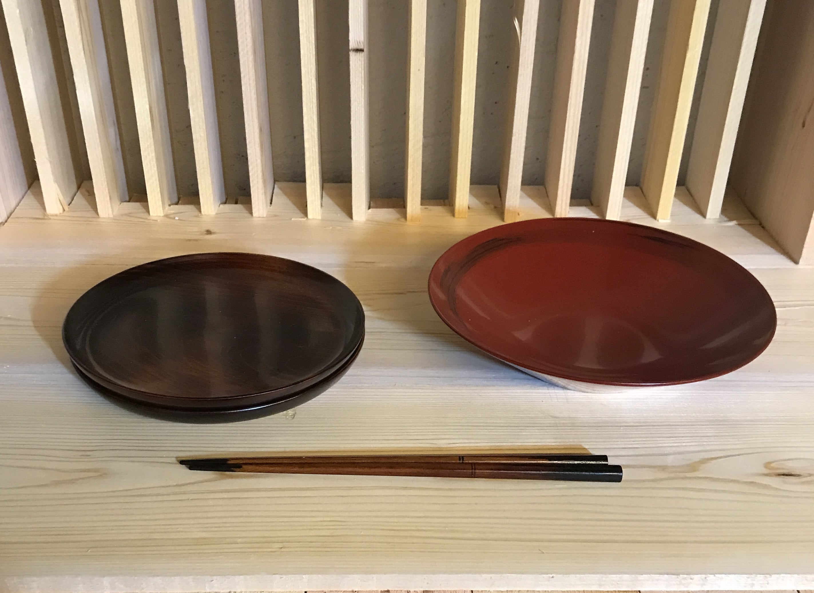制作予定の棚の仮施工・モックアップと自宅の漆器