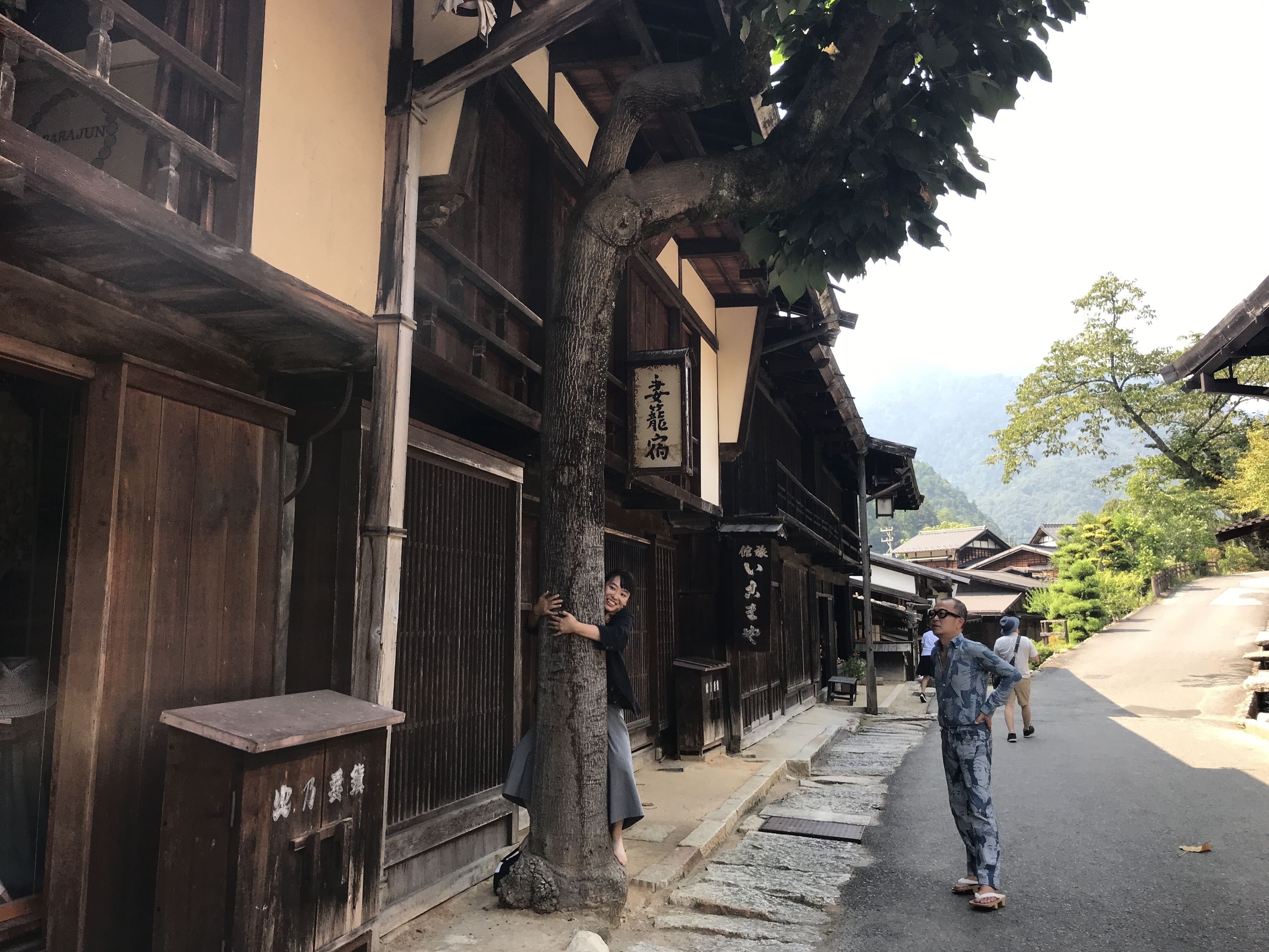 木曽路十一宿の一つ、妻籠宿で、木曽を紹介する記事作成のための取材風景