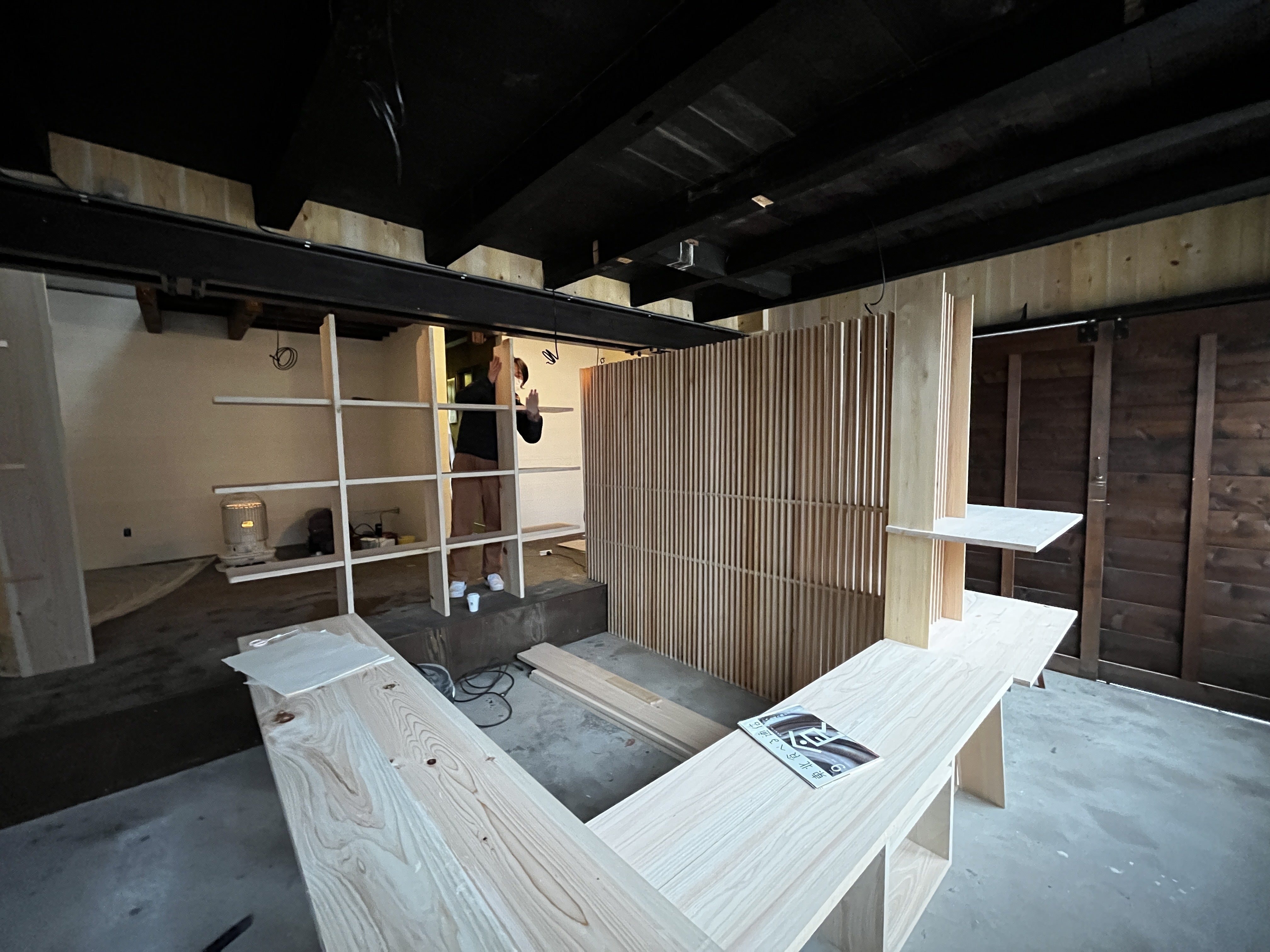 木曽の工房をお借りしての自主施工のための造作工事。できることは自分で。
