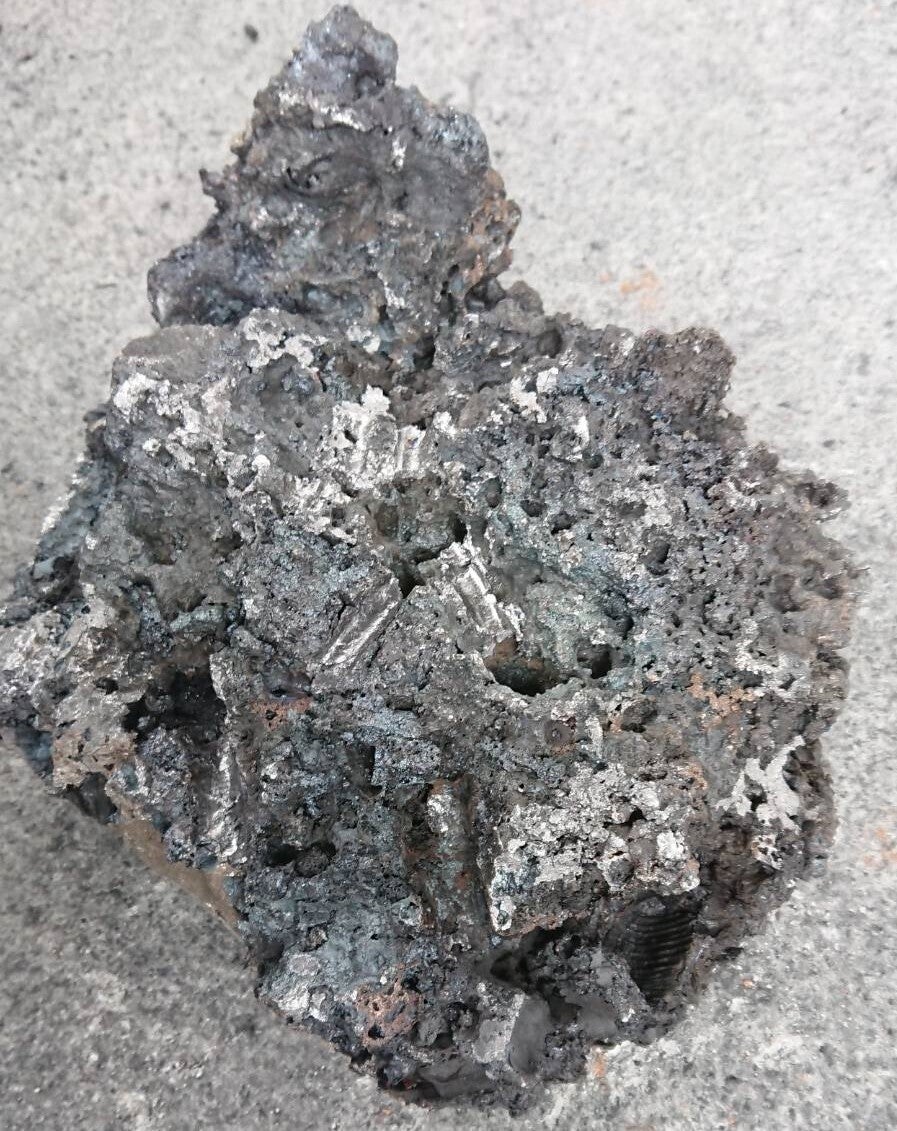 たたら製鉄を簡単に説明すると砂鉄を木炭で還元させ、鉄を得る方法です。粘土で築炉し、一回の操業に 砂鉄を40㎏、木炭を100㎏程使い、約8時間程度の時間を要します。最終的には鉄のかたまり「鉧(けら)」を取り出します。 たたら操業中の炉の中の温度は最高1400度位まで温度が上がり、このたたら製鉄によってできた和鐵が日本刀や高級和包丁、高価な茶釜の材料となります。