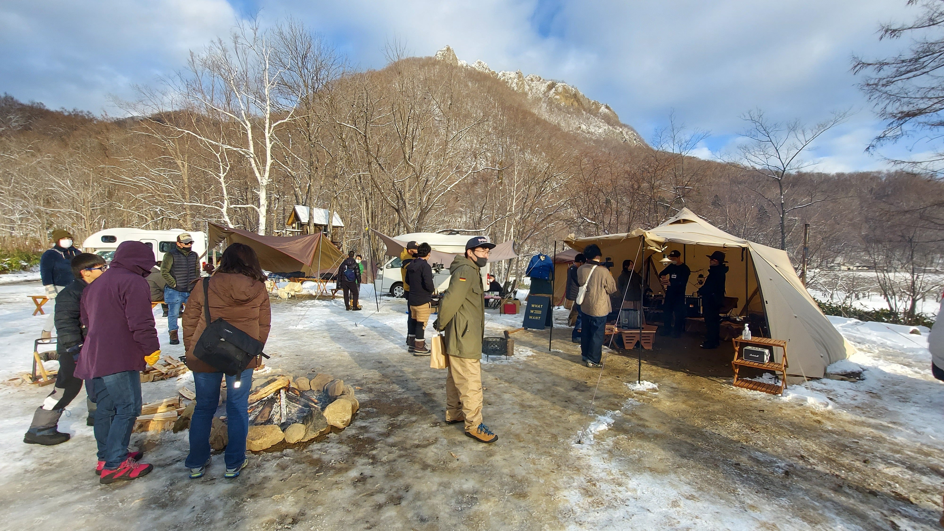 2021年12月5日 、当キャンプ場内で「冬のキャンプフェスティバル」を開催しました。当日は、300人を超えるたくさんのキャンパーが集い、キャンプ飯用の肉類の専門店や焚火台メーカーなど10社がブース出展、ショッピングや、プロソロキャンパーによるトークショーも、堪能しました。いま冬キャンプが熱い!