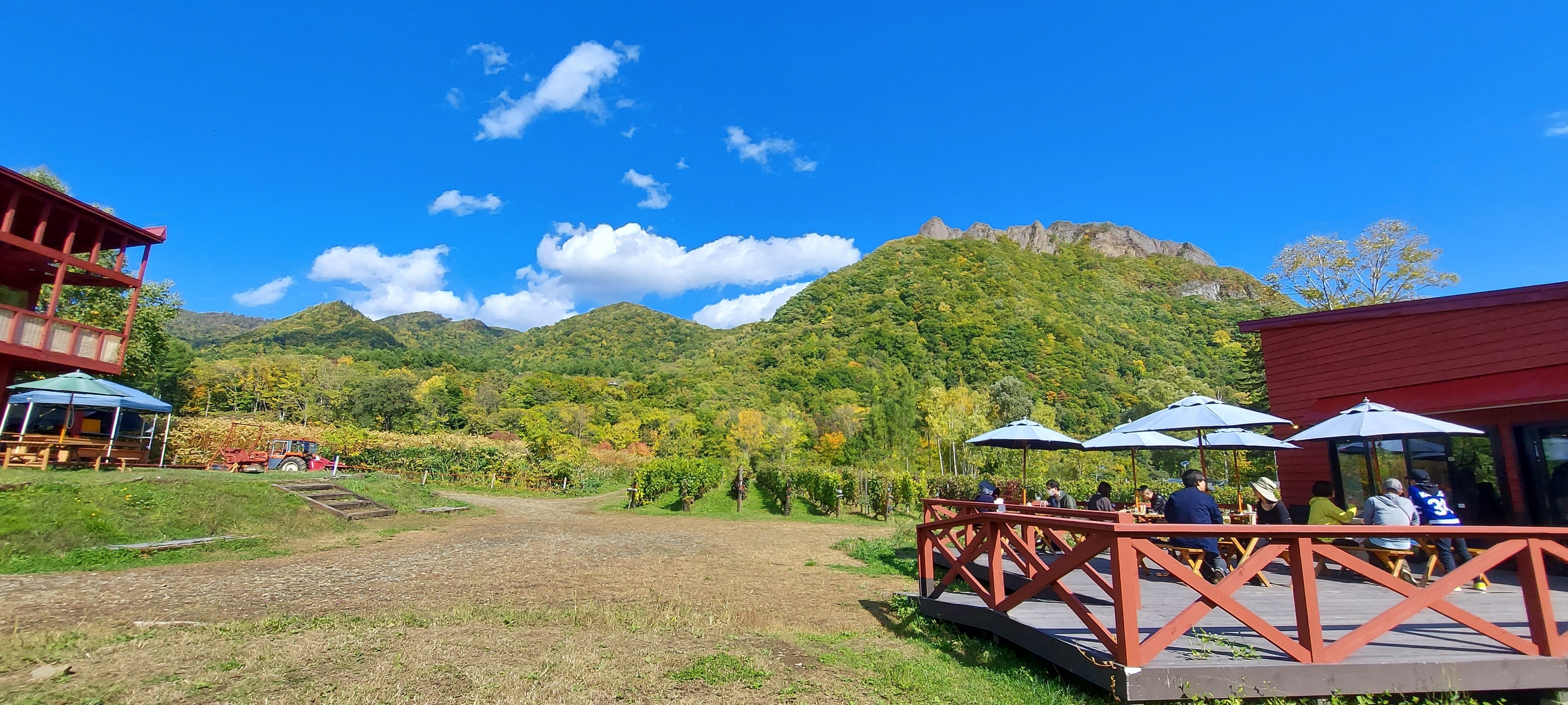 この地域は、札幌市南区のちょっと忘れられかけた果樹園地帯。知る人ぞ知る、の隠れ場的な場所でした。この景観に魅了された札幌市の地質コンサルタント会社の創業者が、地域農家の有志の皆さんと、地域活性化のためにと、2011年に立ち上げたのが「八剣山ワイナリー」 です。実は、隣の敷地も、初心者も受入れる「乗馬クラブ」や「パークゴルフ場」、「釣り堀」などの観光資源が動きだしていた場所。今では、お互いに協力しあって、地域魅力度アップに努めています。盛り上がりつつある人気のもとは、地元施設をまわる林間フットパスの存在や、地元野菜などを直販する「八剣山あおぞら市」の共催など、地元が一体となって皆さんのご来訪をお迎えする熱い心が、道内外からの客様に伝わってきたことにあると思います。