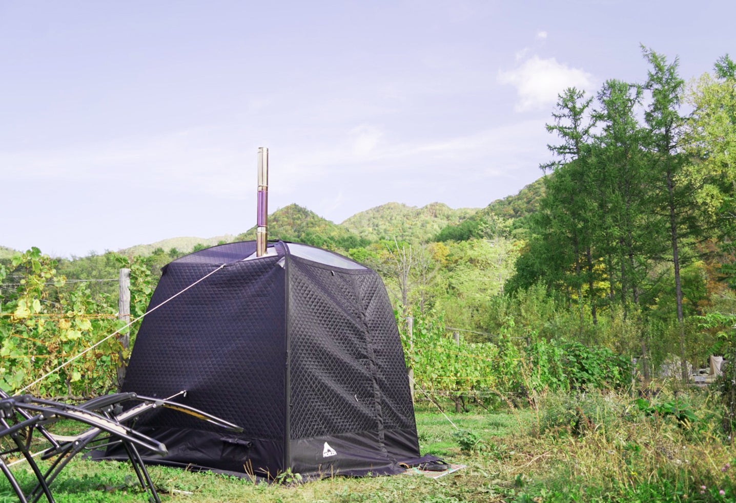 ブドウ畑のそばでテントサウナを試してみました(21年9月)