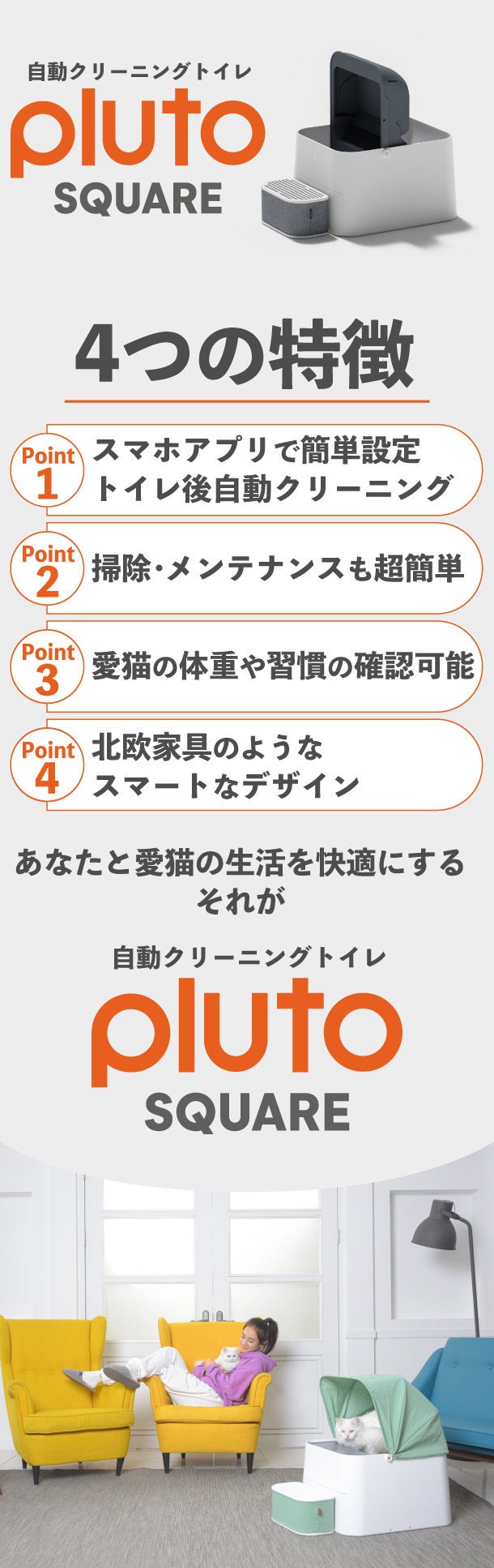 Pluto Squareは、韓国と日本でNo.1の猫用トイレであるCircle Zeroのコアメンバーによってデザインされ、LG電子の子会社である韓国の一流メーカー、Hanmiflex社が製造しています。開発者は不衛生なトイレのせいで愛猫が腎不全で亡くなってしまったとき、プロダクトデザインとマーケティングの経験を生かして、安全に使えて、常に衛生的で、価格も手ごろな自動猫トイレを作ることに情熱を注ぎました。また、インテリアに調和するよう美しいデザインのものを追求しました。