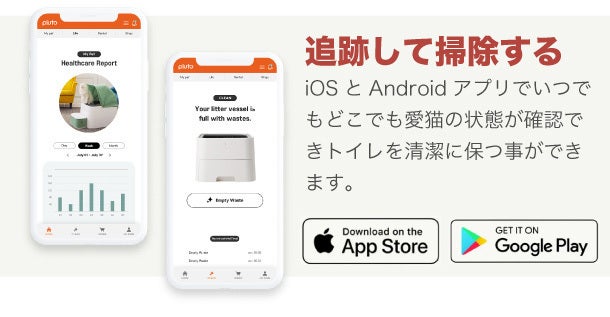 A:①使用時間 ②頻度 ③猫の体重 のログを追跡および保存します。これらのログに突然の変動があった場合、Plutoアプリはアラート通知を送信します。