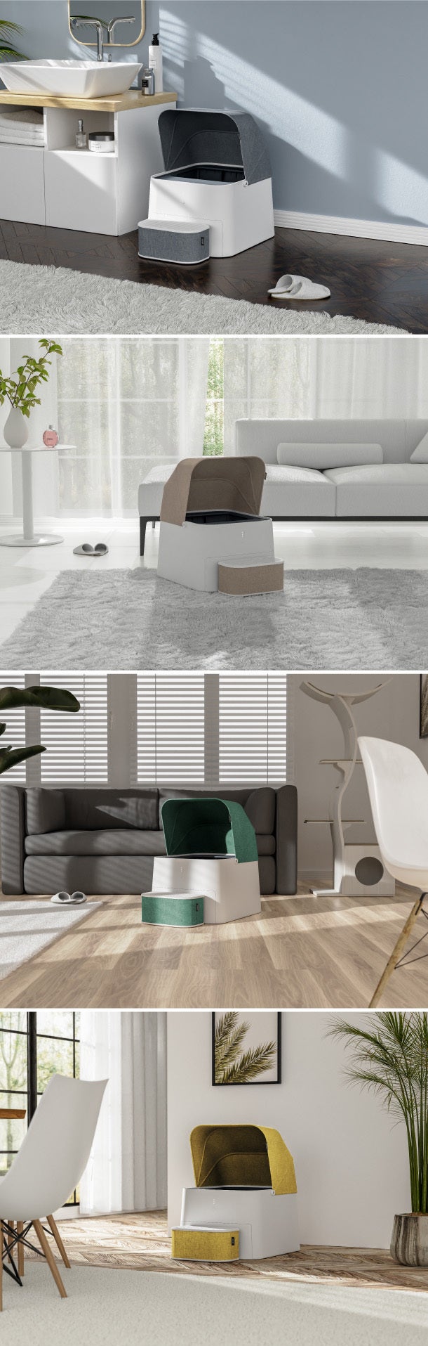 キャノピーと完璧にコーディネートされたステッパーで、臭いや水しぶきがなくなります。掃除の際に発生するホコリや残留物にもおさらばできます。愛猫の幸せとあなたの快適さを両立させます。