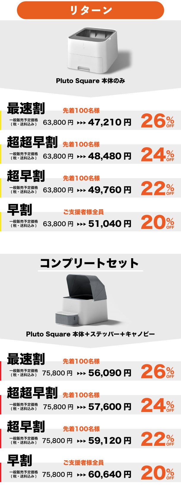 ・皆さまのご支援により量産効率が向上した場合、正規販売価格が販売予定価格より下がる可能性もございます。