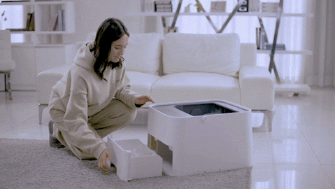 ダストケースをあけてゴミ袋を交換するだけの手軽さで、今までのゴミをすくうのに費やした時間が無くなりライフスタイルの余裕が生まれます。週1回程度ダストケースを掃除するだけの手軽さ。(1匹で使用時)