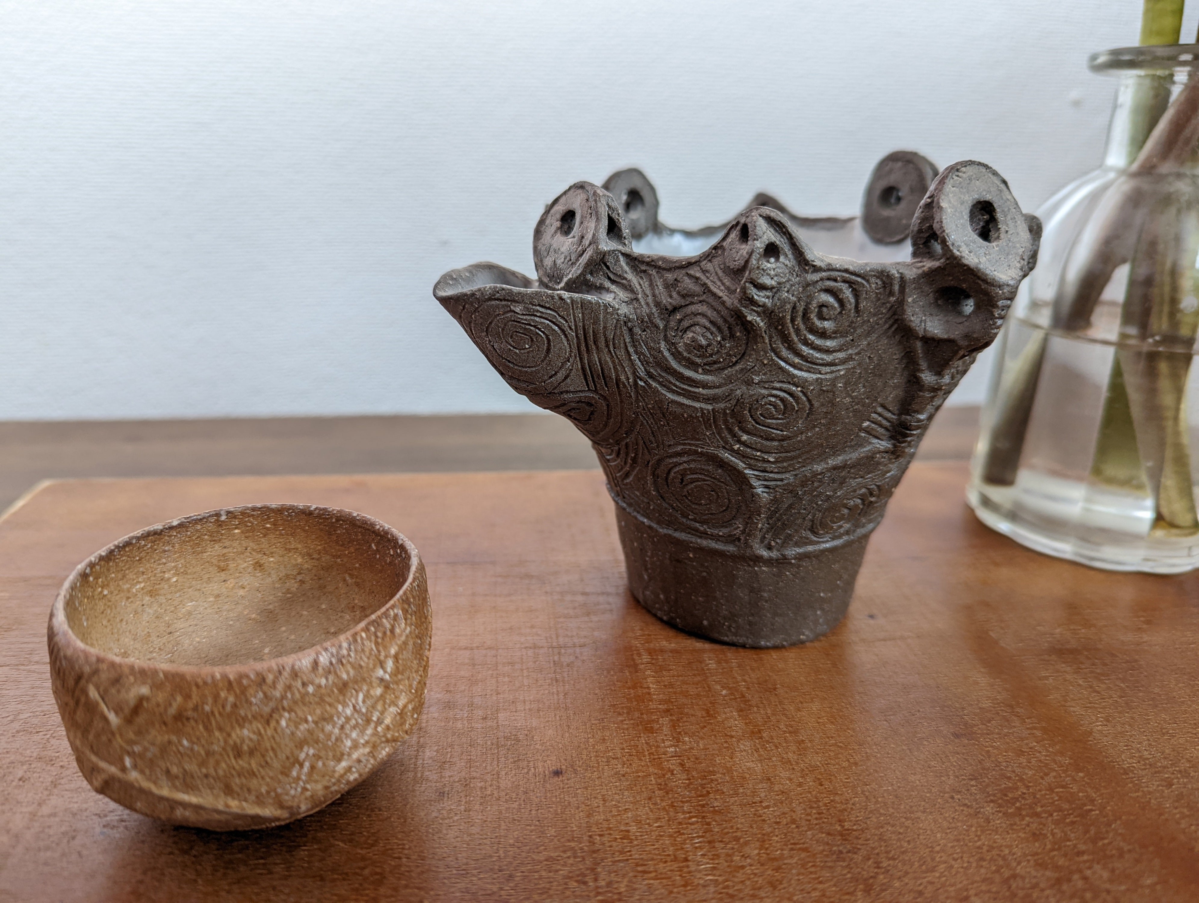舟形町で初めて会ったとき、彼女は縄文時代の野焼きの再現のために巨大な火を準備していた。金さんは、仕事に対する並々ならぬ情熱と、どんなに過酷な状況下でも集中できる不思議な力を持っている。この伝統的な方法で粘土を焼くために集まった生徒たちを指導する彼女の姿は、とても魅力的だった。ただでさえ高温の火に、さらに薪を積み重ねるが、金さんはその熱にも動じない。幼い頃、母親の実家である大蔵村の山奥でよく遊んでいたそうだ。夏休みになると、弟きょうだいと一緒にバスに乗って山奥に行くのが恒例だった。その時にふれた自然とのかかわりは陶芸工房「舟形わかあゆ薫風窯」で制作する比類のない粘土作品に生かされている。20年以上にわたる粘土の仕事と、縄文時代の粘土芸術に対する自己流の情熱(愛かもしれない)が、最もユニークで美しい現代美術の作品を生み出しました。今回のクラウドファンディングでは、その素晴らしい作品の数々を制作していただくことになりました。粘土細工は、ひとつひとつ丁寧に手作りされ、あなたのもとへ発送される予定です。