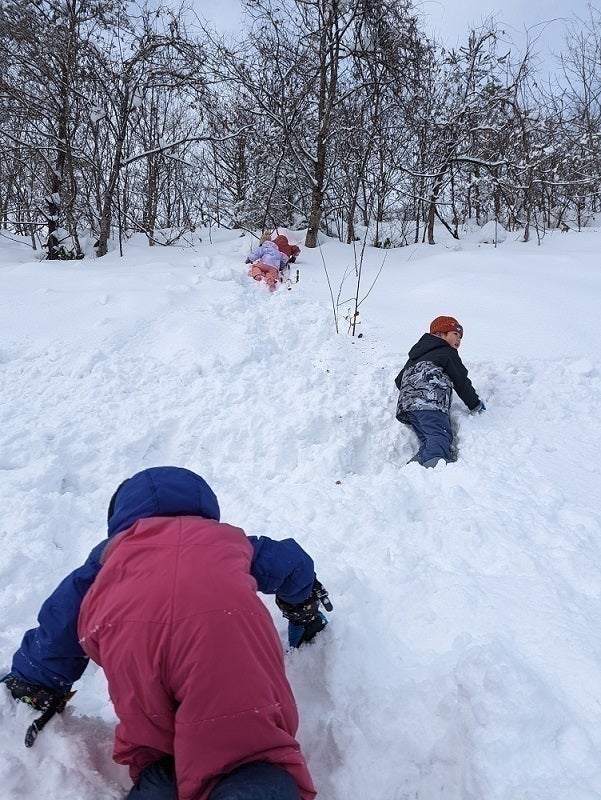 こんにちは。私はカムイキッズの共同創設者の一人、フレッドと申します。 カムイキッズは認可外の森のようちえんです。スタッフ二人とも幼児教育の経験が豊富で、長年の経験を持っています。常時、スタッフのうち少なくとも一人は保育士資格を持っています。 しかし、子どもや幼児期への強い思いがあれば、多様な背景を持つ他のヘルパーも歓迎します。カムイキッズは、幼児から小学校6年までを対象とした団体です。現在は最上地方全域で活動しており、新庄の市民の森、鮭川村のエコパーク、舟形町の小国川などでよく遊んでいます。私たちの使命は、子どもたちが自ら学ぶことをサポートすること、彼らが自身やコミュニティ、そして自然につながることができるような、信頼感のある構造化されていない自由度が高い学習環境を提供することです。